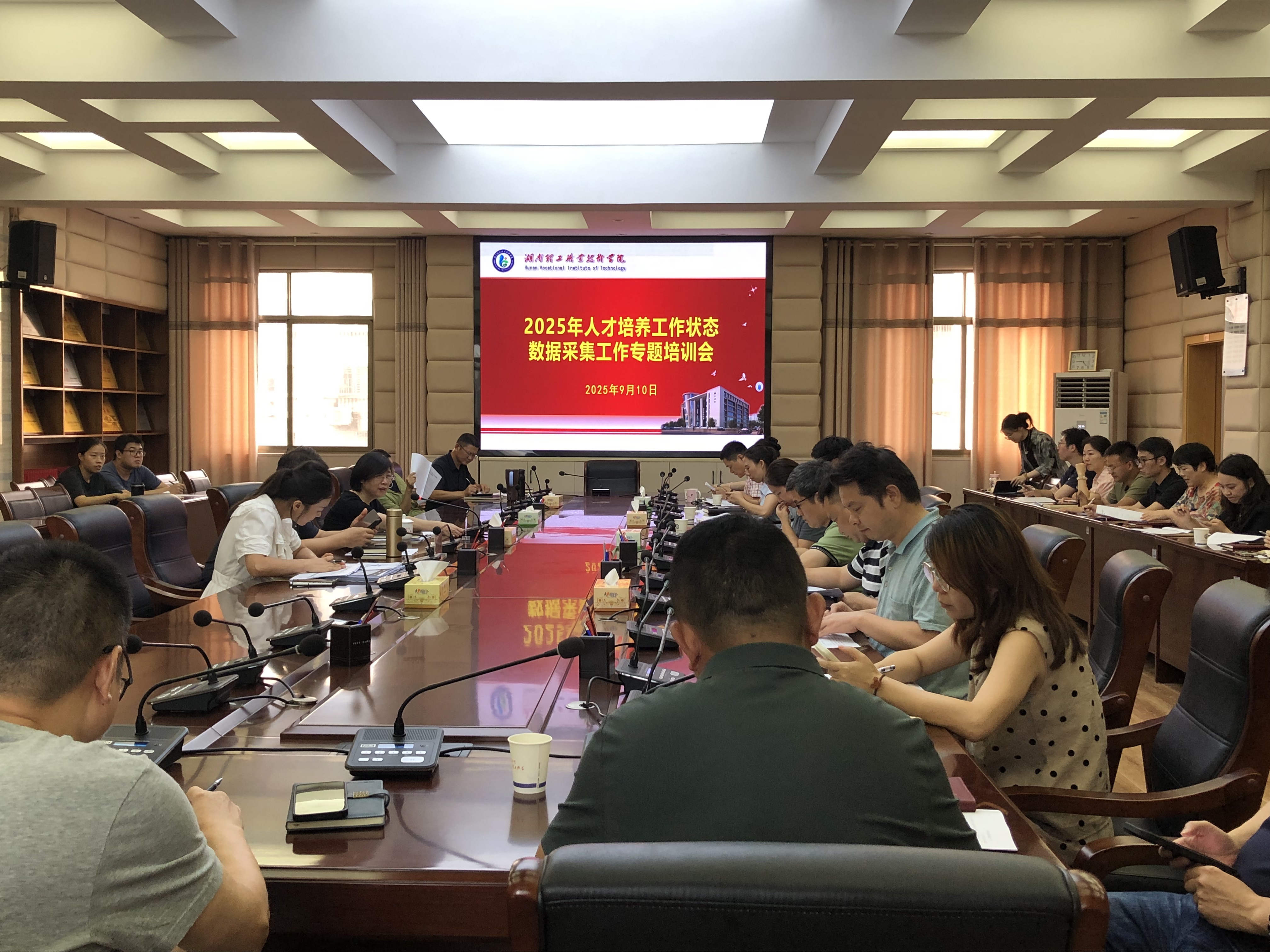 为高质高效完成“2025年高等职业院校人才培养工作状态数据采集与管理平台”填报工作,9月10日下午,我校在求实楼三楼党员机关活动室组织召开了2025年人才培养工作状态数据采集工作培训会。副校长周金玉、何瑛、各部门各单位主要负责人和数据采集人员、发展规划和重点项目建设处全体成员参加会议,会议由何瑛主持。