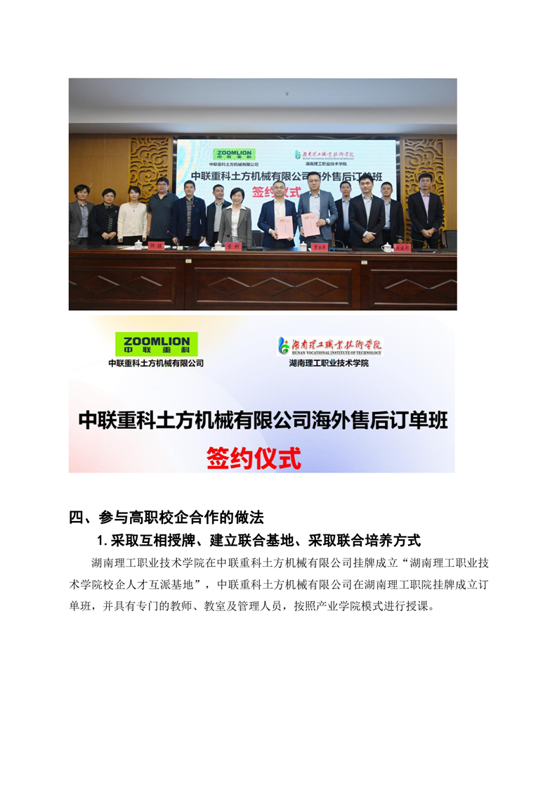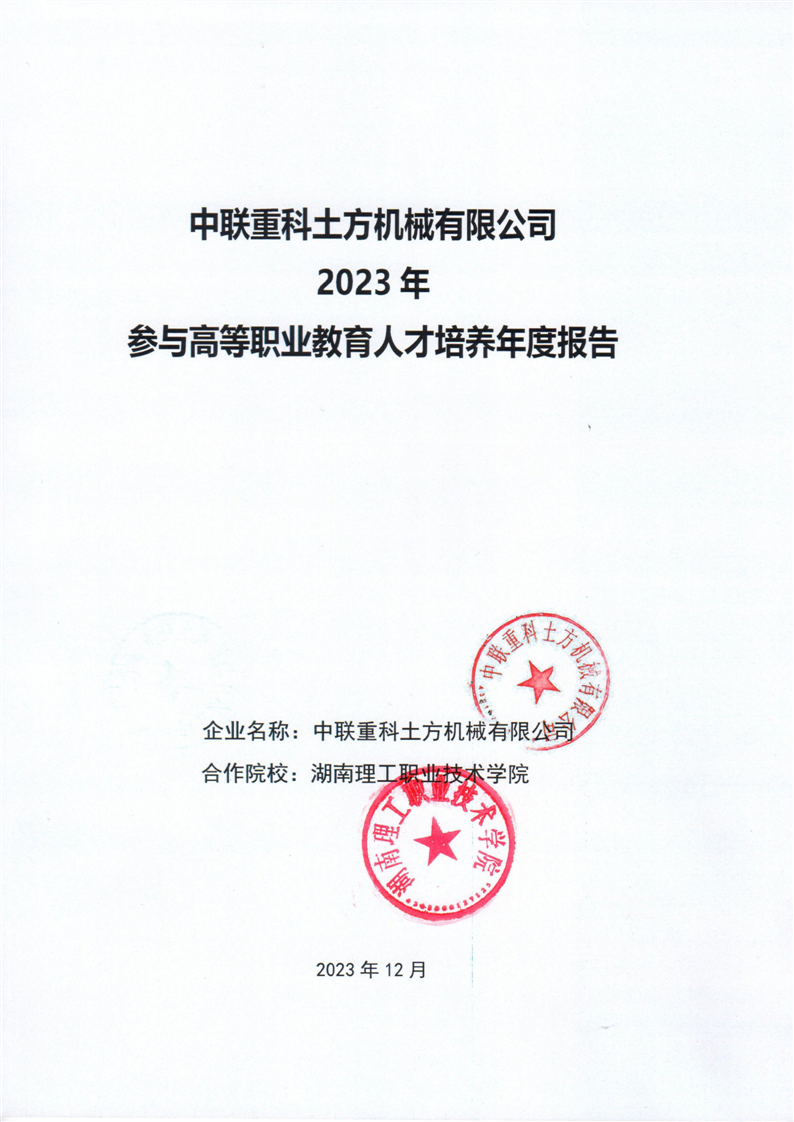 中联重科土方机械有限公司参与高等职业教育人才培养年度报告(2023年度)