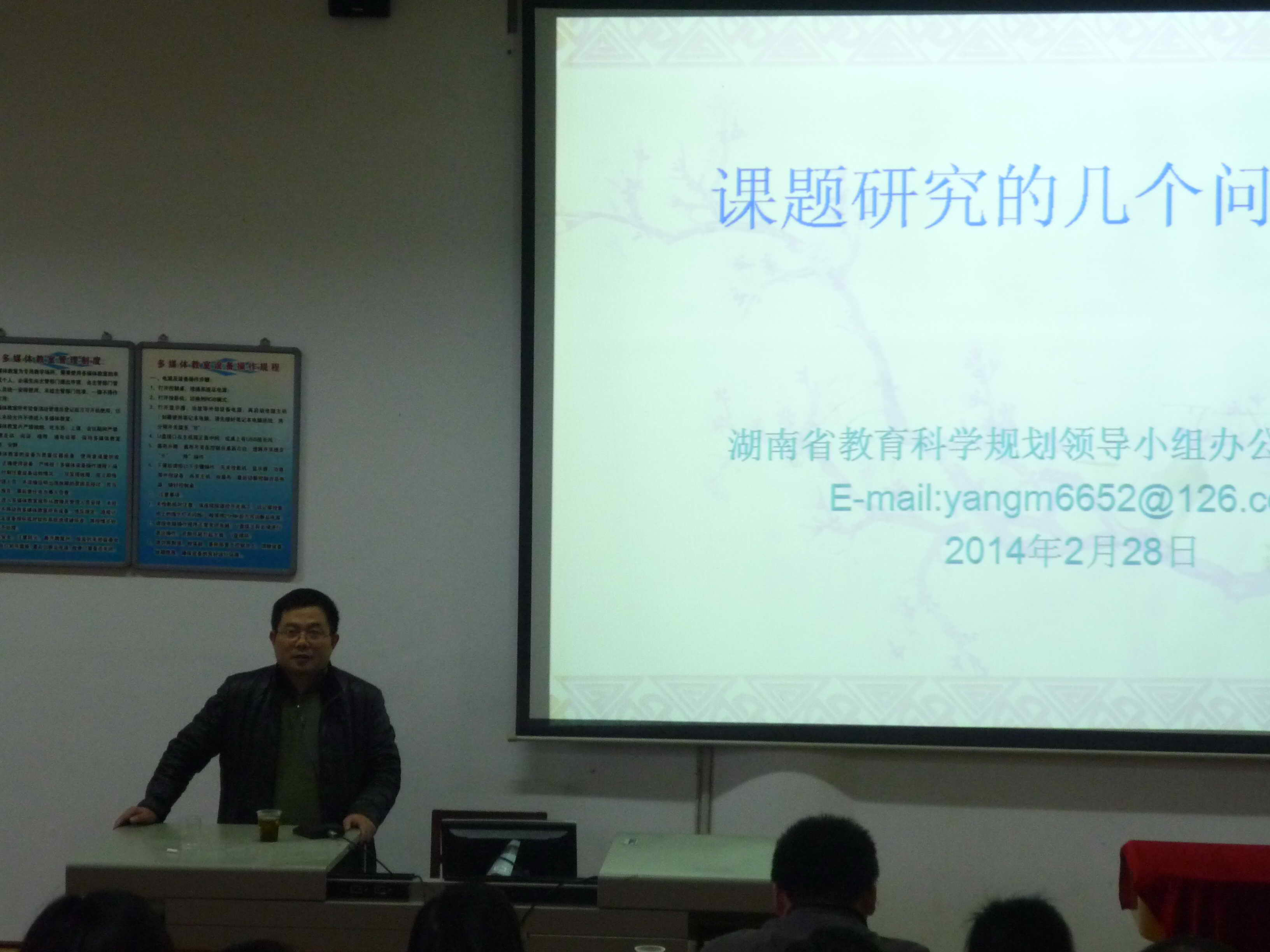 春雨纷飞,到处是一片欣欣向荣、生机勃勃的景色,在这好雨知时节,当春乃发生的季节里,为了适应形式的发展,提高我院教师的科研立项知识水平,2014年2月28日下午,科研处请来了湖南省教育科学研究院规划研究所杨敏所长在多媒体一教室进行了关于科研课题立项申报的知识讲座!黄霞春副院长等领导出席了专题知识讲座