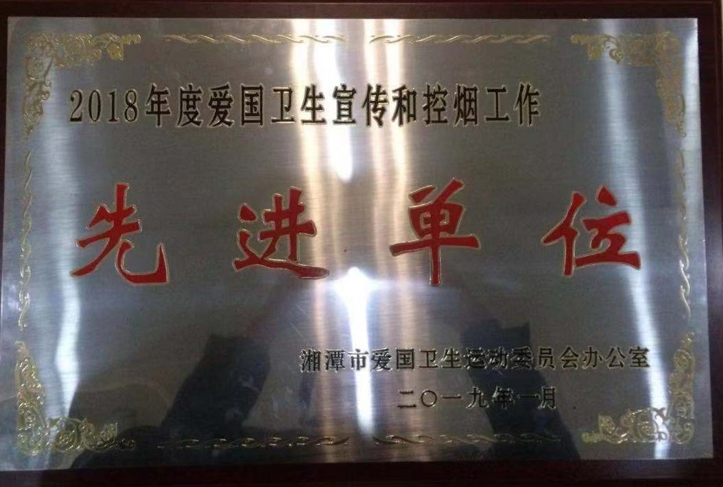 经湘潭市爱卫办考核评定,我校爱卫办荣获2018年度爱卫宣传和控烟工作先进单位。