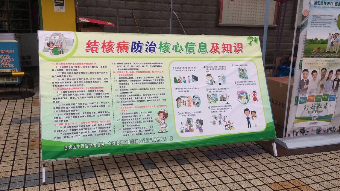 本次活动通过发放结核病防治宣传材料、设立宣传展板、现场解答等形式,向学生宣传结核防治核心信息及知识要点。岳塘区疾控中心工作人员、东坪街道社区医生深入浅出的讲解了结核病防治知识,同时,号召更多的学生加入到结核病防治志愿者行列。