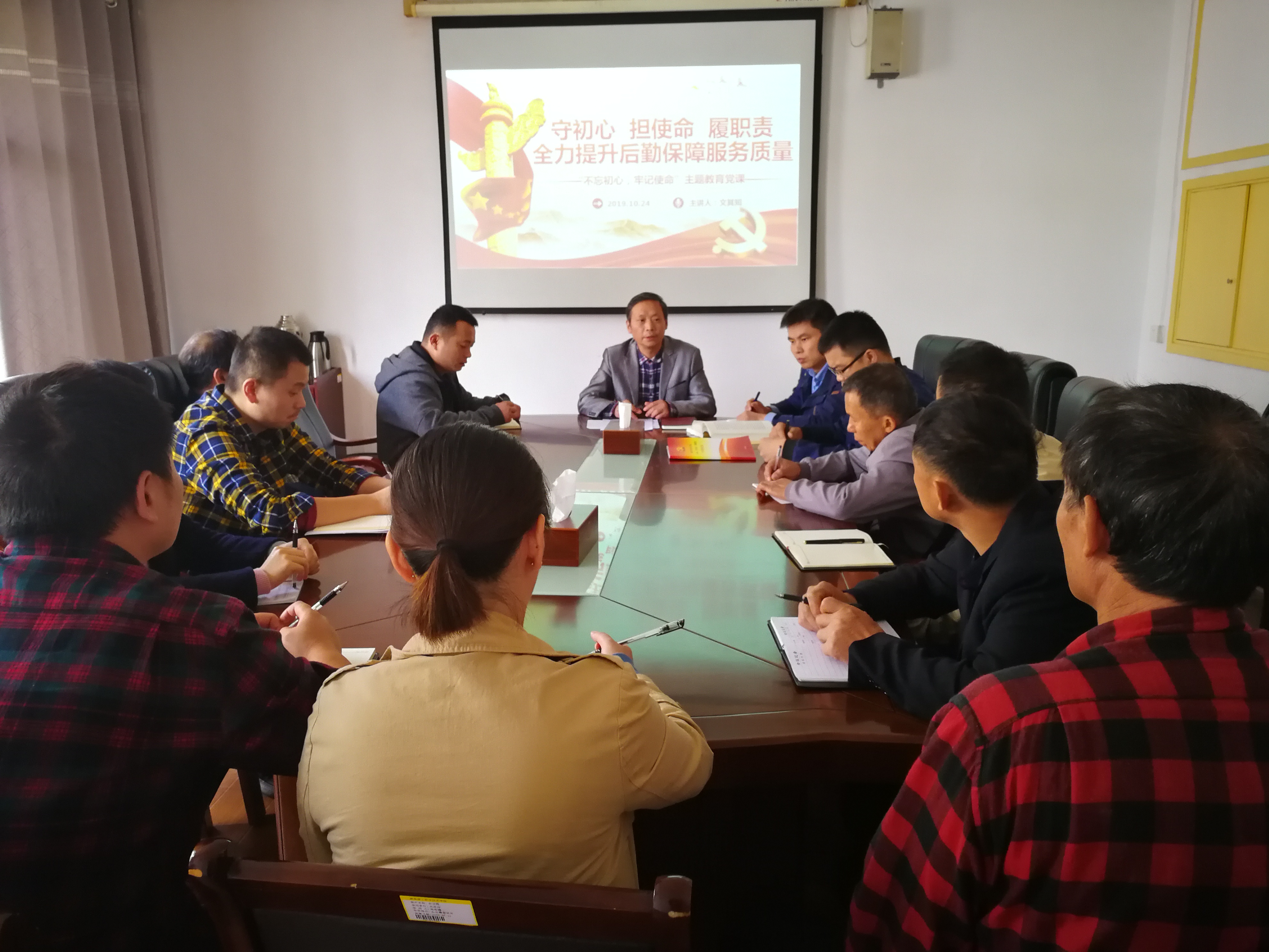 10月24日上午10:30-12:00,后勤处党支部书记文其知以《守初心 担使命 履职责,全力提升后勤保障服务质量》为题,为部门全体教职工上了一堂“不忘初心、牢记使命”主题教育专题党课。