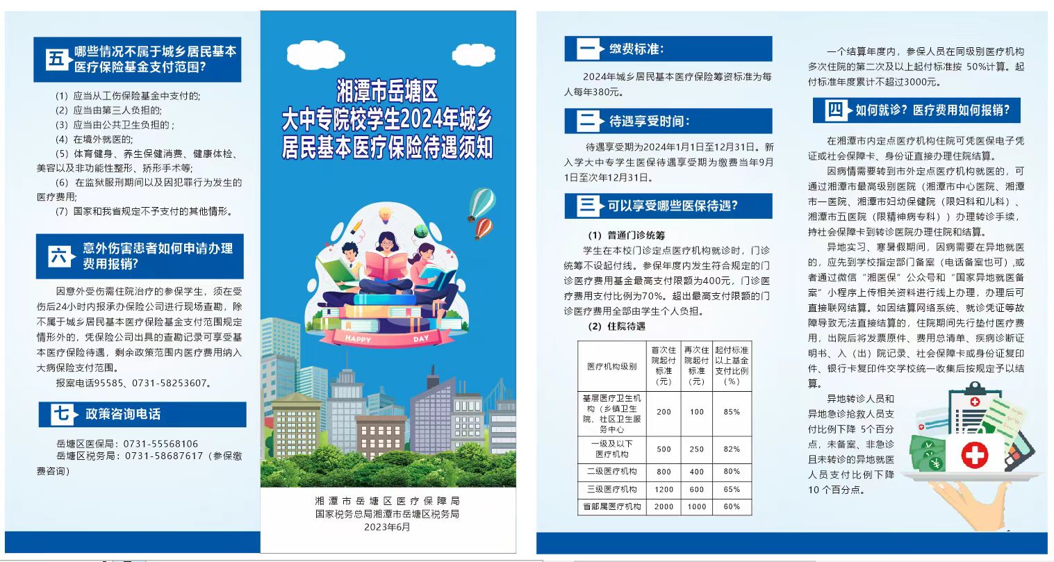 湘潭市岳塘区大中专学生2024年城乡居民基本医疗保险待遇须知