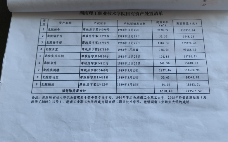 经研究,学校决定将北院房屋做报废处置。共有9处房屋、原价值727575.52元。依据《湖南省省级行政事业单位国有资产处置管理办法》的有关规定,按照固定资产处置程序,国有资产管理处依法依规进行了报批,现予以公示。
