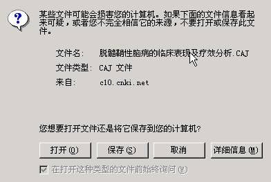 PDF下载)后,系统将出现一个提供“打开”或“保存”按钮的窗口。点击“打开”,当系统安装有CAJ浏览器时,则系统先打开浏览器,再打开文献,可在此页面浏览文献,如认为需要保存可点击页面左上方的“文件”下的“另存为”保存文件。