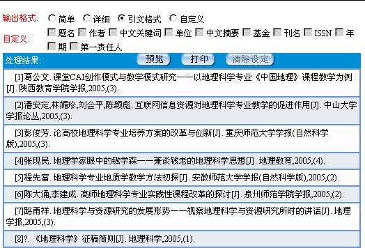 系统提供四种题录存盘格式:简单、详细、引文、自定义。如果要改变题录存盘格式,可选择上述四种格式中的任意一种,再点击