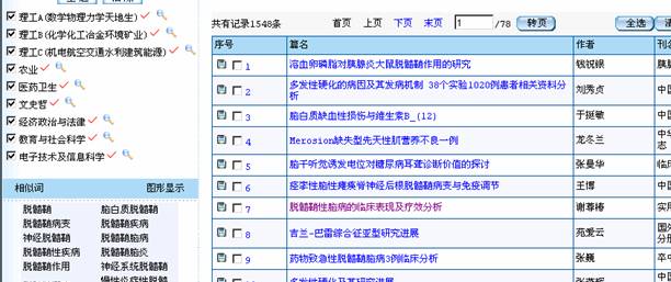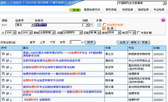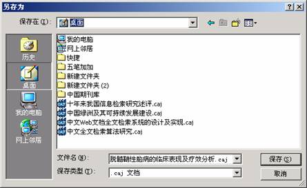 这里有一点需要注意的是,在检索结果中有个“全选”和“存盘”,的按钮,这里的“存盘”并不是全文存盘,而是对题录进行存盘,是为了写论文的时候方便查找引文而设定的。