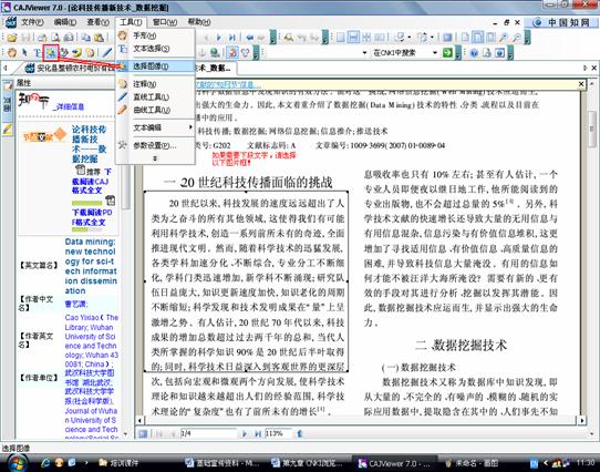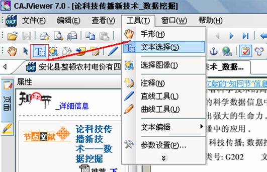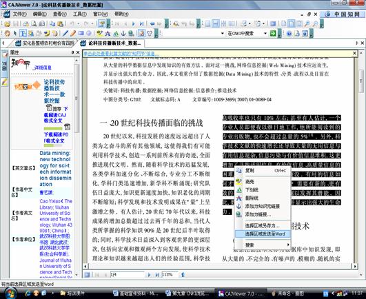 推荐大家使用CAJ浏览器,其在文字编辑处理方面更加出色。由于各种数据库中都存在着图片格式的文章,只能浏览和打印,不能对其中的文字提取和复制粘贴,很不方便。CAJ浏览器在处理这种问题的时候展现出其强大的优势,其文字识别所用的软件核心是国内鼎鼎大名的清华紫光的文字识别软件,正确率相当高。