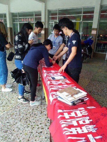 上午10点,由图管会组织的签名活动正式开始,虽然当天的天气并不如人所愿,但是身为读书人的我们依旧热情高涨。随着第一位同学签下自己的名字后越来越多的同学注意到了这里并留下了他们自己的记号。