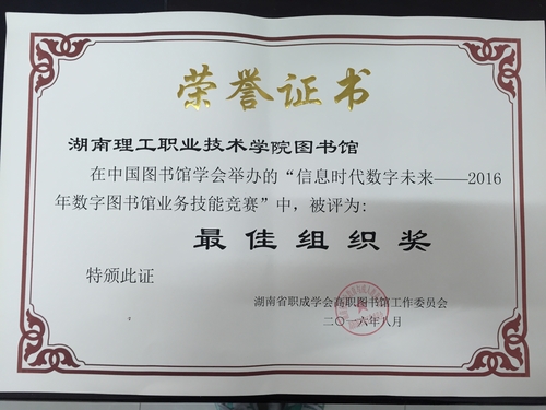 年数字图书馆业务技能竞赛”中被评为最佳组织奖。