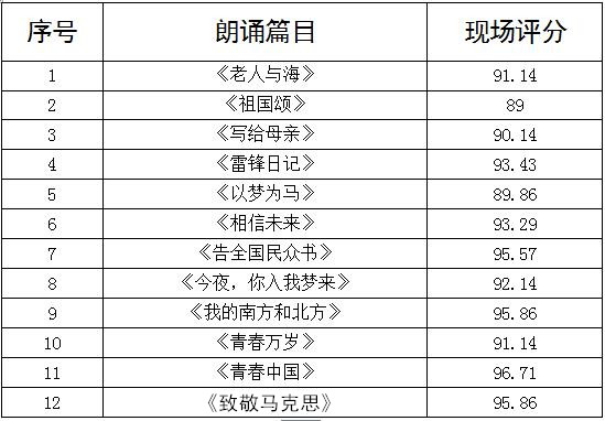 赛毕,叶星成书记精彩点评,叶星成书记对本次诵读比赛给予了充分肯定,他表示:“这是一场唯美的视听盛宴,这是一场丰盛的精神大餐。同学们简约、清爽、稳健、大气的激情朗诵,深深地吸引了我、打动了我、震撼了我。”叶书记指出,大家的表现比想象中的更出色、更努力、更青春,同学们的精彩表现从一个侧面生动反映了学校每周一书、每课一讲、每日一记、每人一语“四个一”育人活动是深得人心、卓有成效的,今后要更加广泛深入地开展下去。叶书记强调,学习是学生的天职,希望广大同学将从育人活动中激发出来的青春活力源源不断地转化为学习动力,学以立志,学以立德,学以立技。