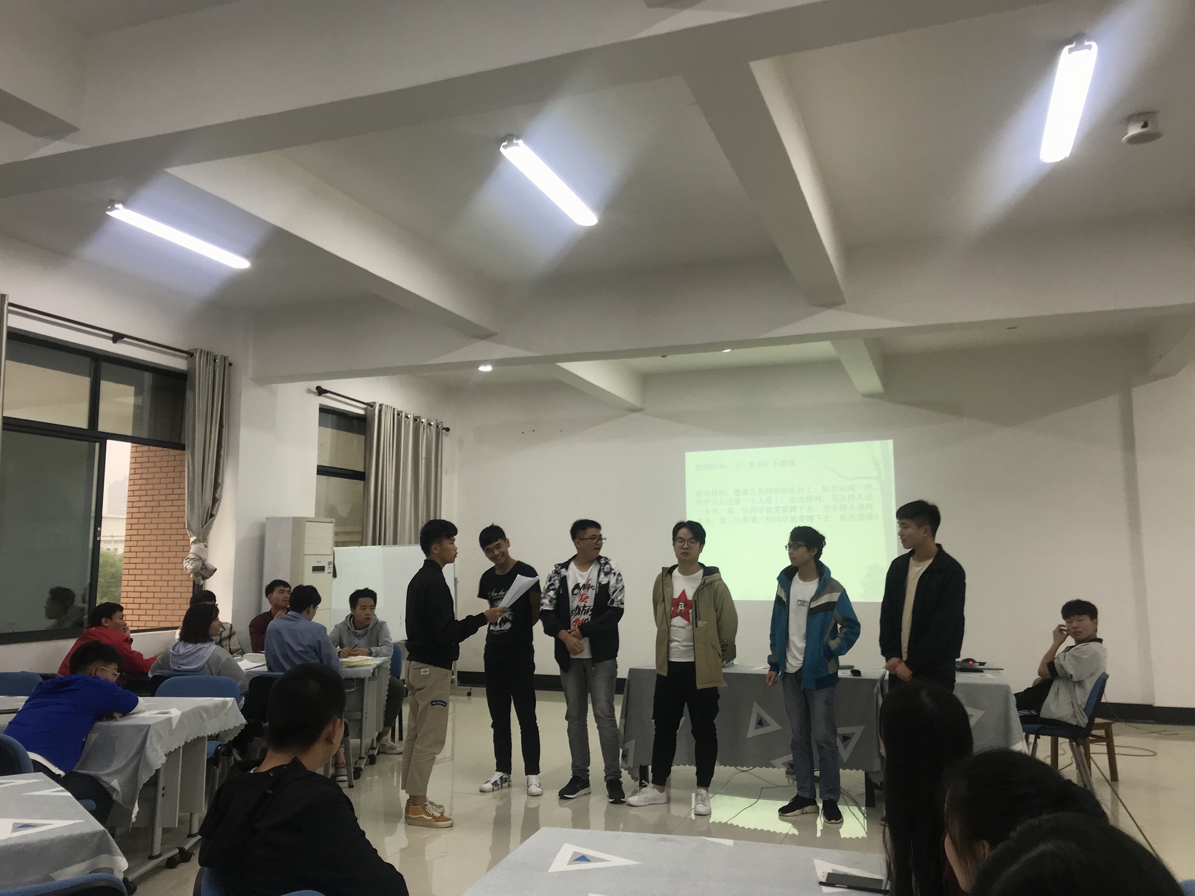 第二个环节是读书分享,分享者分享他们的阅读心得“正直,很多人都有,执着,少部分人拥有,永不放弃,极少部分人拥有,如果把这三点加在一起,我们便可以成为一个成功的人。”我们想想看,堂吉诃德为了实现自己的梦想,可以向敌人进行不屈不挠的进攻;为了自己的梦想,落得一身悔恨,可他放弃了吗?没有,他依然执着,依然勇猛,依然正直,虽然这都已经成了历史,但他永不言败的精神确实这的我们后人学习。而正像那句“一千个人有一千个哈姆雷特”说的那样,几位领读者从《堂吉诃德》中提取出来的思想是完全不同的。分享完阅读心得同学们玩了几轮小游戏,气氛活跃了起来,接下来又是两位同学的阅读分享。