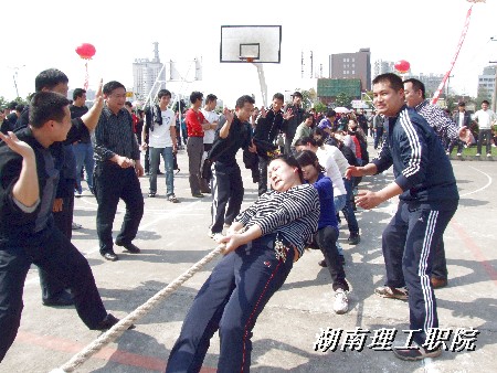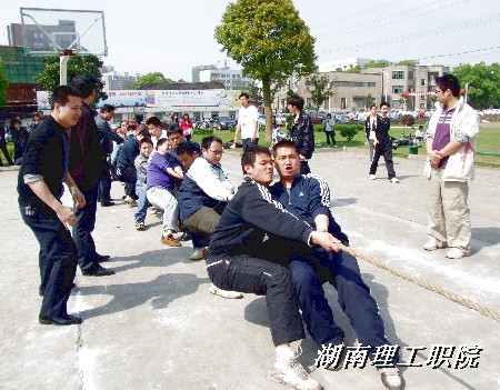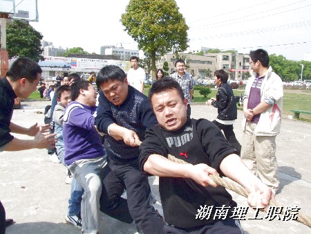 为了扩大学院影响,加强同兄弟院校及市教育单位之间的感情交流,4月23日,我院组织男女两个代表队共38人,参加了湘潭市直属基层工会教职工拔河比赛。