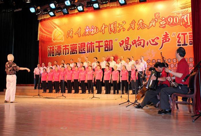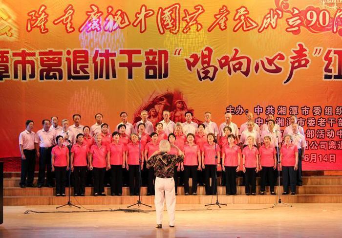 今天上午,我院离退休处组织离退休职工合唱队到湘潭钢铁集团公司俱乐部,参加了庆祝建党90周年湘潭市离退休干部“唱响心声”红歌赛。