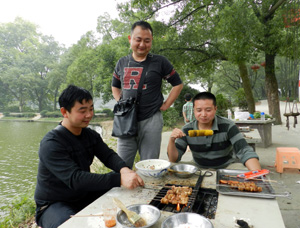 上午,大家先开展了登昭山活动,对率先爬上山顶的六位男女职工分别发放了奖品。同时,还参观了昭山的天王殿庙。下午,大家又相聚在木山冲原生态休闲山庄,进行了野外烧烤、钓鱼、卡拉OK、玩牌等一系列活动。大家在一起开心快乐,增进了友谊,促进了院领导与青年教师之间及青年教师之间的相互沟通、交流。 院工会:葛辉摄影报道