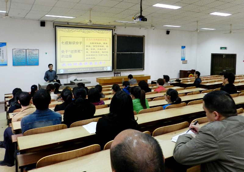 四月十二日下午,院工会邀请湖南中药高等专科学校推拿研究所所长王德瑜教授,来我院作“我的健康我作主”健康知识专题讲座。王教授从什么是健康,以及中医治未病养生保健的基本原则和经络拍养生法等几个方面作了认真的讲解。学院部分老师和机关工作人员及个别老同志听了课。