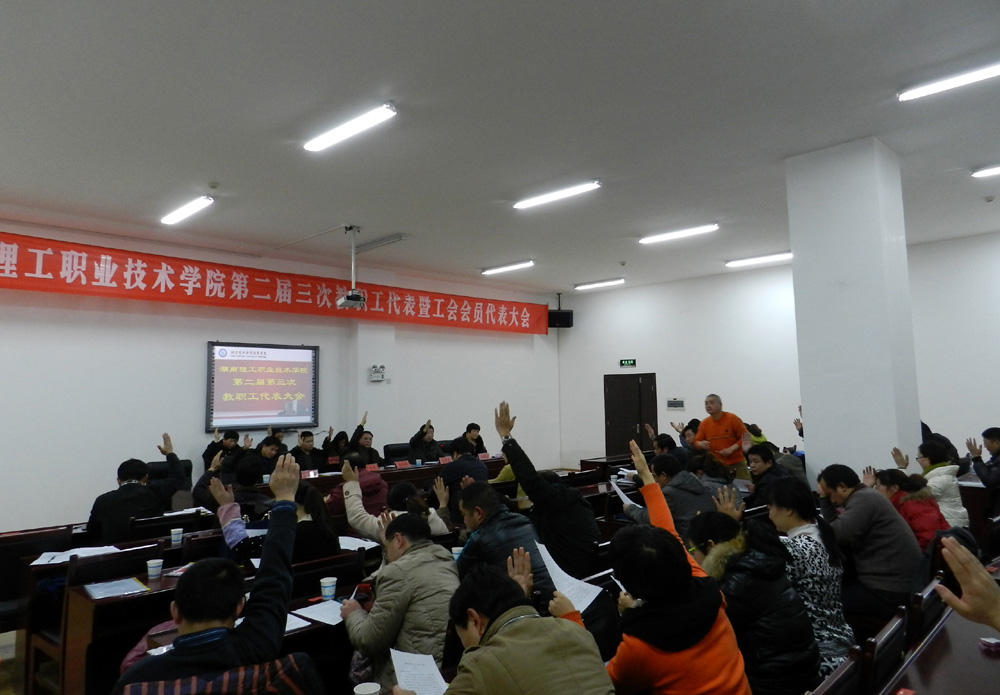 上午八点,大会正式开始。分别由朱奇卫、黄霞春副院长主持。首先,洪丕庆副院长致开幕词。之后,院长罗先进作行政工作报告、人事处处长周金玉就教职工在职人员绩效工资和离退休人员津补贴调整方案作说明、陈庚仁老师作本次会议的提案工作报告。会上,代表们针对行政、工会、财务工作报告和津补贴调整方案分组进行了认真讨论。大会主席团认真听取了各代表组汇报的意见并进行综合整理。下午四点三十分,院党委书记秦裕武对几个报告的讨论情况、教职工在职人员绩效工资和离退休人员津补贴调整方案、学院一、二栋学生公寓回购方案和教职工代表的几个提案等所提出的问题作了说明。会上,代表们经过举手表决原则上全部通过了三个工作报、学院一、二栋学生公寓回购方案。教职工在职人员绩效工资和离退休人员津补贴调整方案除一人弃权外有52人举手表决原则上通过。最后,院党委书记秦裕武作闭幕词,他从三个方面要求全体教职工统一思想、坚定信心、履行职责、扎实工作为学院的发展作出新的贡献。 院工会:葛辉摄影报道