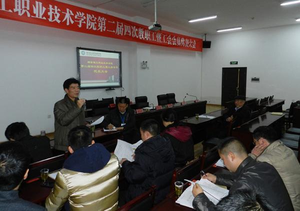 在大会正式召开之前,1月18日晚上召开了全体正式代表预备工作会议。会上,全体通过了三名补选的职工代表,副院长朱奇卫就教代会的会议议程作了说明。19日上午八点,大会正式开始。分别由朱奇卫、黄霞春副院长主持。首先,洪丕庆副院长致开幕词。之后,院长罗先进作行政工作报告、副院长朱奇卫作工会工作报告、财务处处长彭莉作财务工作报告、人事处处长周金玉就教职工在职人员绩效工资和离退休人员津补贴调整方案作说明、陈庚仁老师作本次会议的提案工作报告。会上,代表们针对行政、工会、财务工作报告和津补贴调整方案分组进行了认真讨论。大会主席团认真听取了各代表组汇报的意见并进行综合整理。下午四点三十分,院党委书记秦裕武对几个报告的讨论情况、教职工在职人员绩效工资和离退休人员津补贴调整方案等所提出的一些问题作了说明。会上,代表们经过举手表决原则上全部通过了三个工作报。会上决定:在职人员绩效工资和离退休人员津补贴调整方案将在适当时候再召开专题教职工代表大会进行讨论和通过。最后,院党委书记秦裕武作闭幕词,他从三个方面要求全体代表积极宣传、认真贯彻落实好会议精神,团结协作、营造和谐的工作氛围,履行职责、扎实工作,为学院的发展作出新贡献