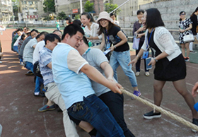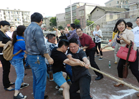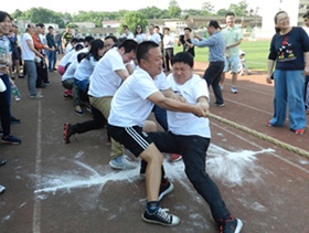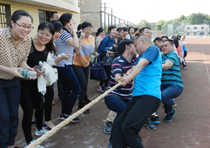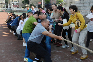 5月17日下午,全校教职工相聚田径运动场参加校工会举办的夏季教职工拔河比赛。这次比赛每个分会组织一个队,每队15名男队员5名女队员。在比赛中,上场队员与啦啦队都团结协作,拧成一股绳,有的队员手拔疼了仍然还在坚持、坚持!有些老师嗓子喊哑了也仍在加油!加油!演绎了我校教职工队伍这种团结与友爱,奋斗和拼搏的顽强精神与风采。而团队协作中显示出的强大的集体主义力量更是让我们真切懂得:“团结凝聚力量,拼搏成就辉煌! ”