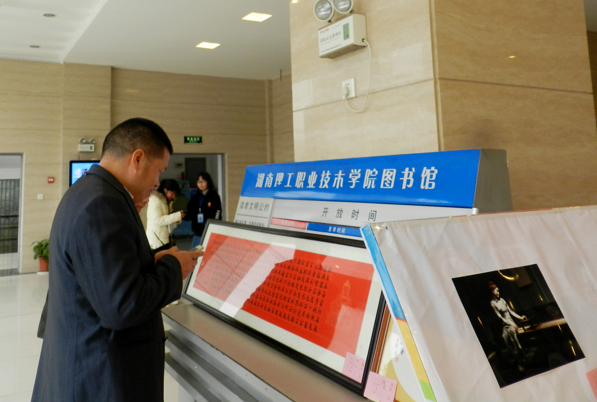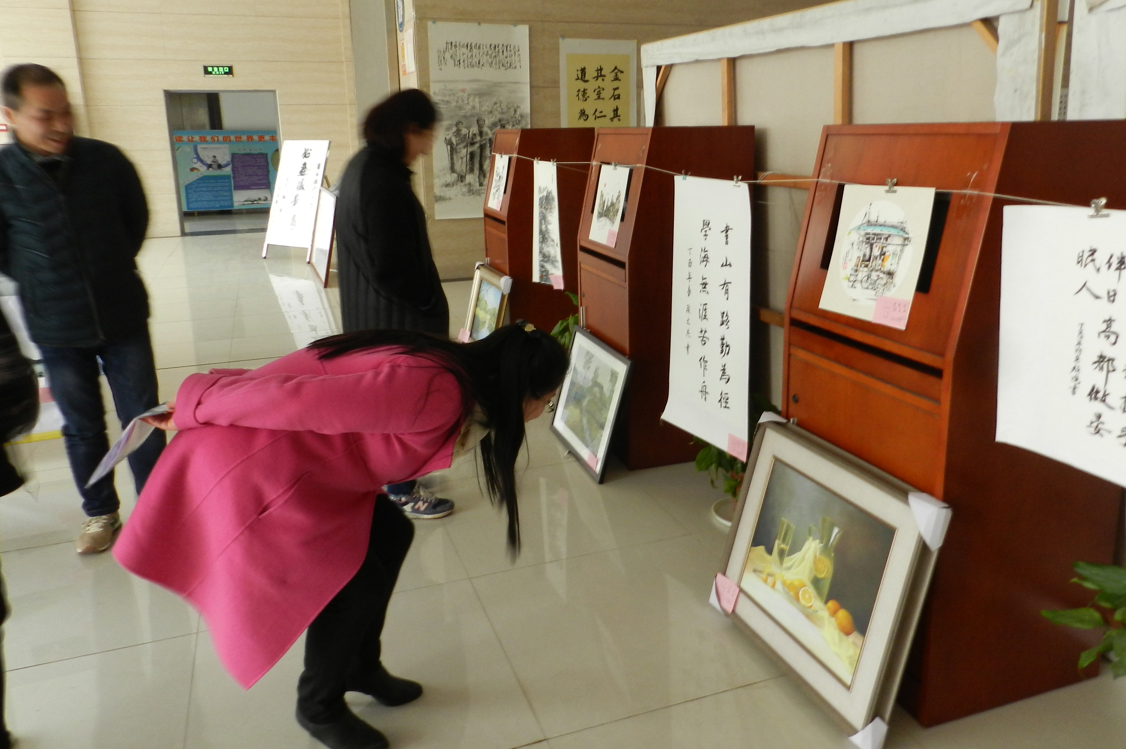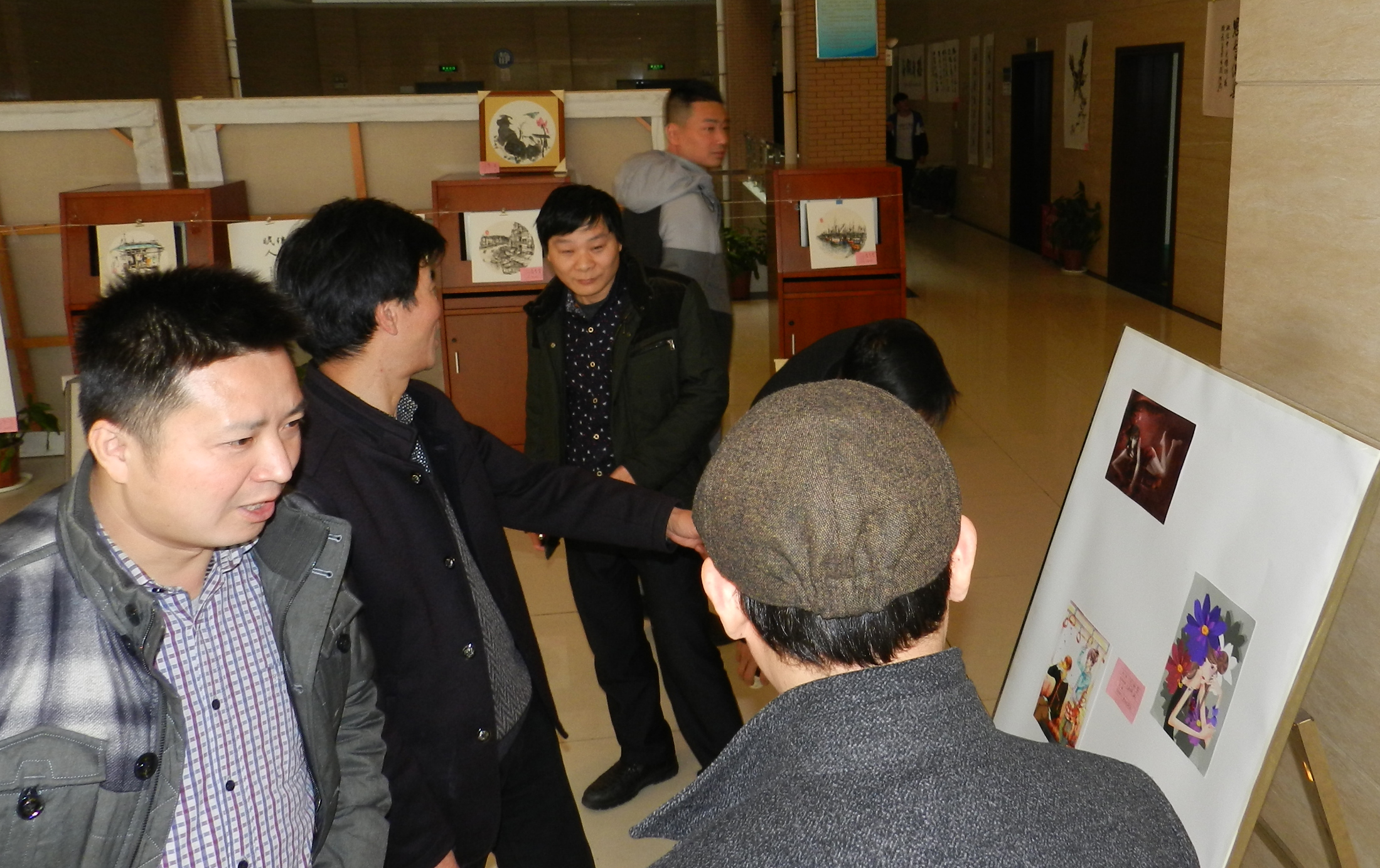 3月4日,校工会在图书馆二楼举办了为期四天的首届教职工及部分学生书画、摄影作品展。在参展作品中,有校党委书记秦裕武的书法作品,田灿老师参加全国画展和市展的美术作品,退休职工徐虹参加市展获奖的摄影作品及其他退休老同志、教职工和部分学生共40多人送交的国画、油画、水粉画、电脑画、建筑装饰画、钢笔画、书法、摄影等作品89幅。校长罗先进看了展览后说:老师展出的作品专业水平很高,反映了我们学校的软实力很强。不少老师和学生看了展览后也都给出了很高的评价,市内一些书画界的同行闻信后也观看了展览。