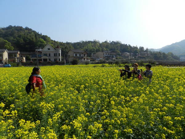 走进七星村,一条小溪潺潺地从村中流过,群山脚下一座座青砖碧瓦的农家庭院极具江南特色。在田间小道,小溪旁边,大家一路谈笑,一路欣赏别出心裁的各色创意小景:风车、蚁穴、彩虹桥、竹子制作的竹子云小道、茅草屋等人文景观。再加上稻田地里盛开的油菜花及山上的映山红所呈现出的春色迷人景象更是让人看得目不暇接,心旷神怡。