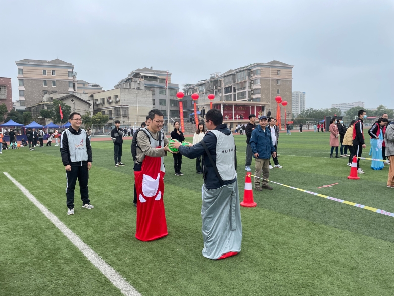 11月24日,“我运动,我快乐,我健康”2022年教职工趣味运动会在田径场顺利开赛。本次趣味运动会共设“袋鼠运瓜”、“一锤定音”、“两人三足”、“拔河”四个项目。参赛队员活力满满、配合默契,齐心协力共同完成各项比赛。