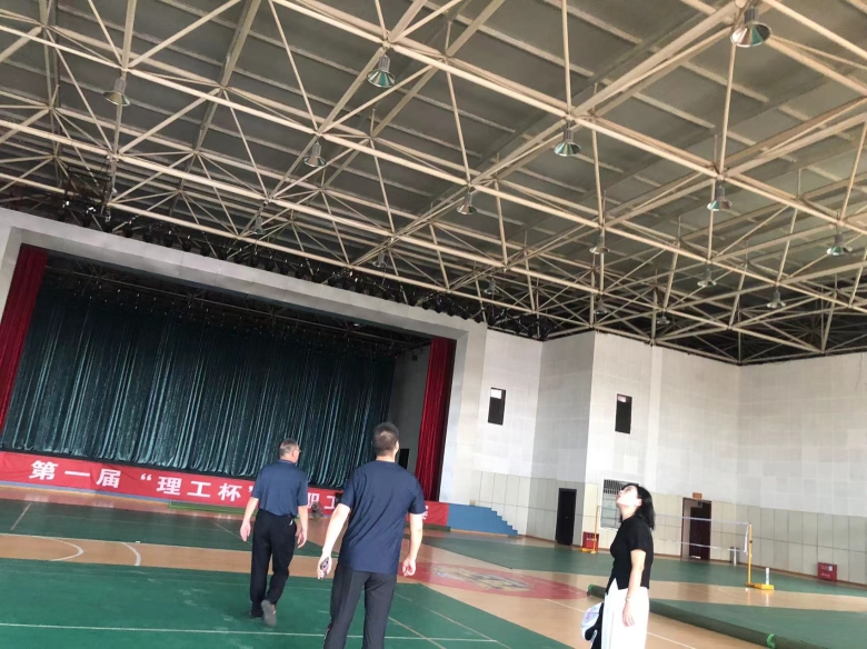 曾丹一行前往退休人员活动室、门球场、食堂三楼报告厅、田径场、篮球运动场地进行安全检查。重点查看了消防设施是否超出有效期、用电安全是否规范、运动器材是否存在安全隐患等情况。同时,对检查中发现的薄弱问题,现场记录并提出整改意见。