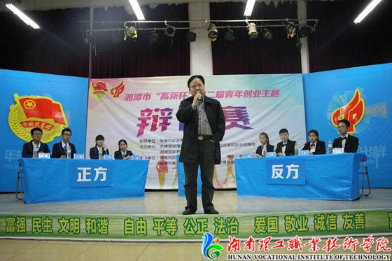 4月15日晚,由共青团湘潭市委员会主办的第二届“高新杯”青年创业辩论赛复赛第二场在湖南工程学院开赛。出席比赛的有湘潭团市委领导,我院和湖南工程学院团委领导,老师以及学生代表。