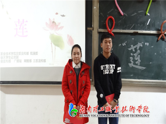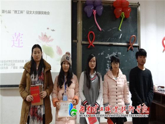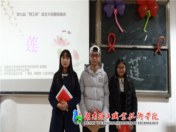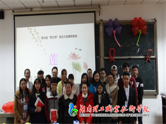 为激发同学们的写作热情,提升写作技巧,提高文学素养。我院开展了由院党委宣传统战部、院团委主办,学联大学生记者团承办的以“莲”为主题的第七届理工杯征文大赛,并于11月26日晚上在三教多媒体一举办颁奖晚会。宣传统战部老师王国军、院团委老师李强、风能工程系老师徐军、太阳能工程系老师江源、管理工程系老师朱彬、五年制大专部老师周常欣应邀出席,晚会近两百人参加。