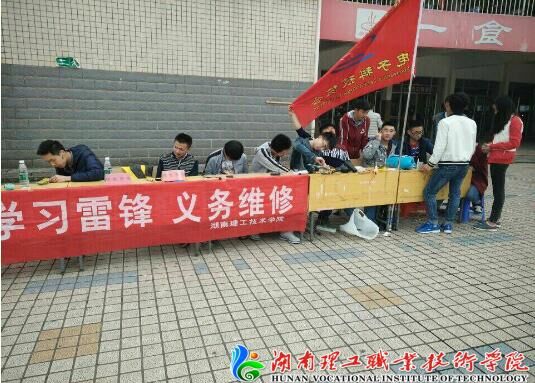 3月5日,我院社团联合会电子科技协会在学校食堂前坪开展了“学习雷锋,义务维修”活动。