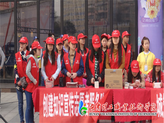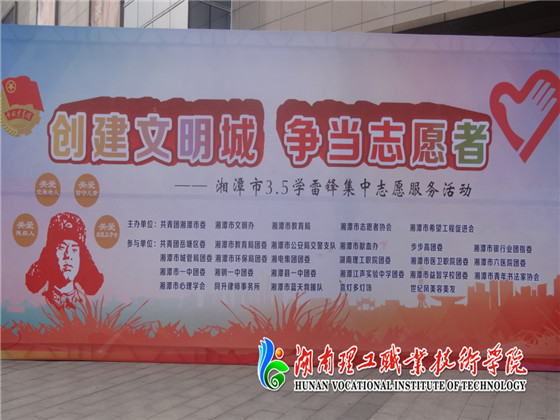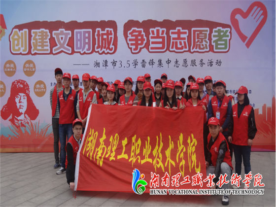 为弘扬雷锋精神,号召广大人民群众共同参与文明城市的创建,3月5日,我院志愿者在湘潭市华隆步步高广场参加由共青团湘潭市委员会、湘潭市教育局、湘潭市文明办共同主办的“创建文明城•争当志愿者”服务活动。