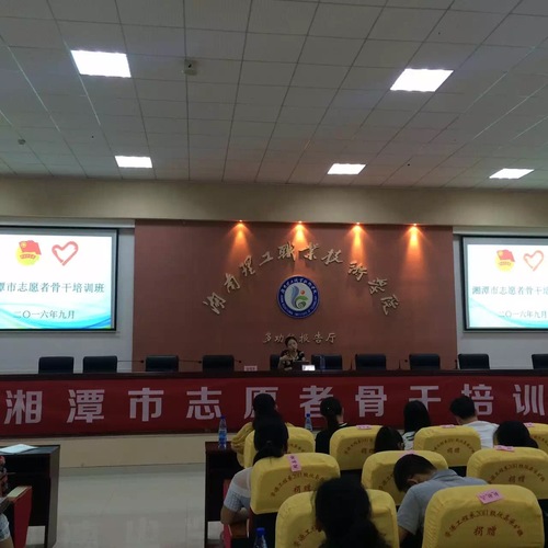 9月26日上午,湘潭市志愿者骨干培训班开班仪式在湖南理工职业技术学院举行,市委宣传部副部长、市文明办主任罗玲玲、团省委志愿者指导中心主任史力、湖南理工职院副校长洪丕庆、共青团湘潭市委书记王利、市民政局人事(社会工作科)科长陈金荣、共青团湘潭市希望工程办公室主任、湘潭志愿者协会会长徐锡耿出席,