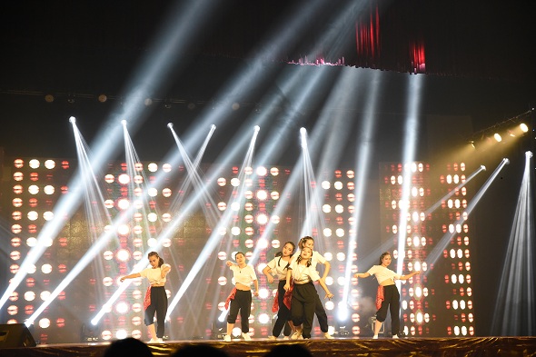 晚会在舞蹈《盛世花开》和《黎明》的恢宏气势中拉开帷幕。《映山红》再现了中华儿女对民族舞挥洒自如的激情和思想;《游击队之歌+喀秋莎》慷慨激昂,表现了青年对梦想的满腔热血;舞蹈《那一年那支歌》,表达了对往夕的回忆;老师们演绎的《十里桃花》飘飘欲仙,引人入目。《HOT》热情四射,《青春舞曲》再现异域风情。虽风格各异,却都展现出了中国传统艺术的魅力;《再见青春》从侧面的体现出了,青春易逝,我们要把握青春;动漫协会带来的《落花情》给我们展现了旗袍的别样风情;古典舞蹈《竹雨沙沙》刚柔并济,情景交融,具有中国特色的舞蹈美学;《青花瓷》生动而又极富节奏感;晚会在歌曲联唱《国家》中落下帷幕,以饱满的热情和昂扬斗志,体现出了青年学生们乐观自信的精神风貌。