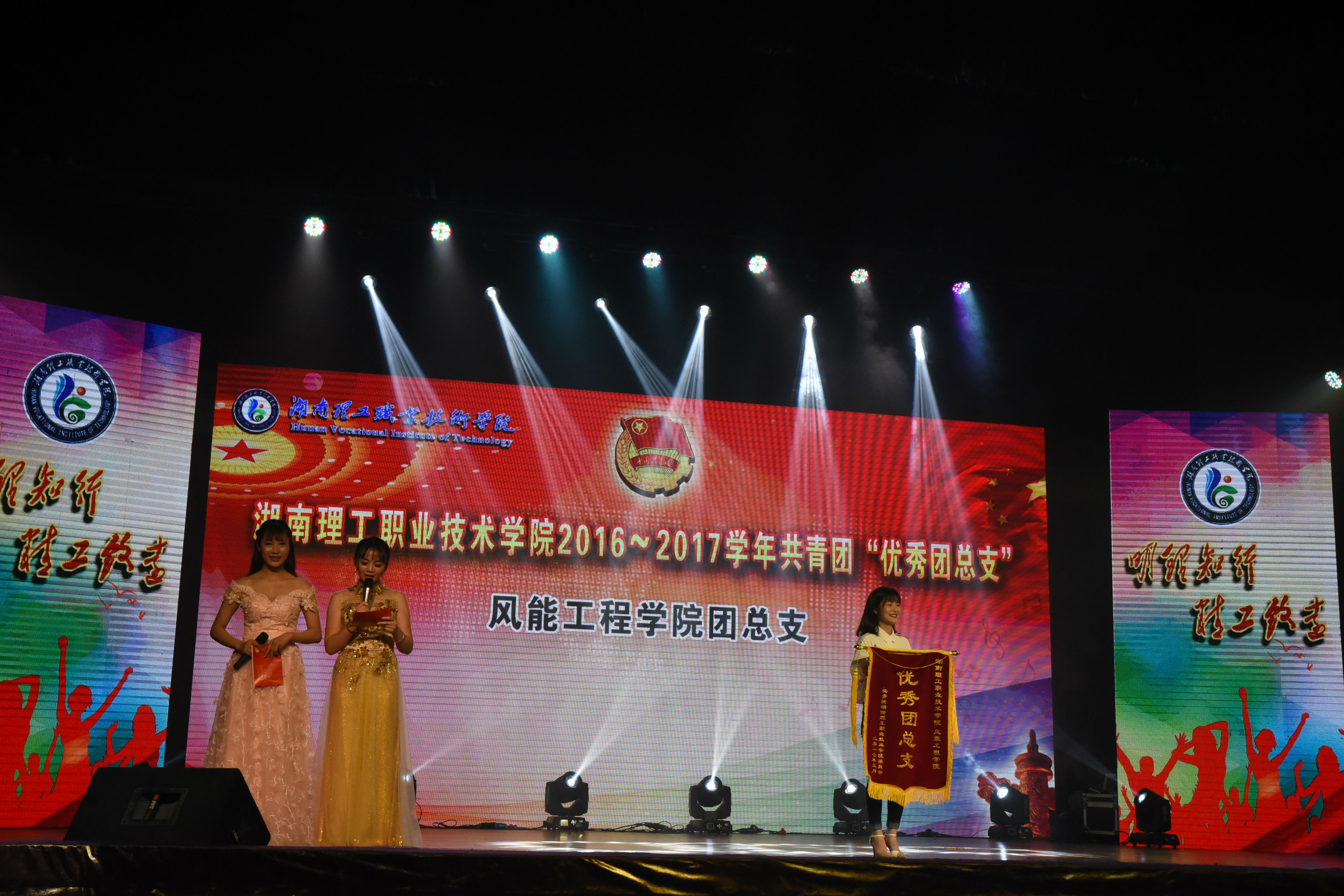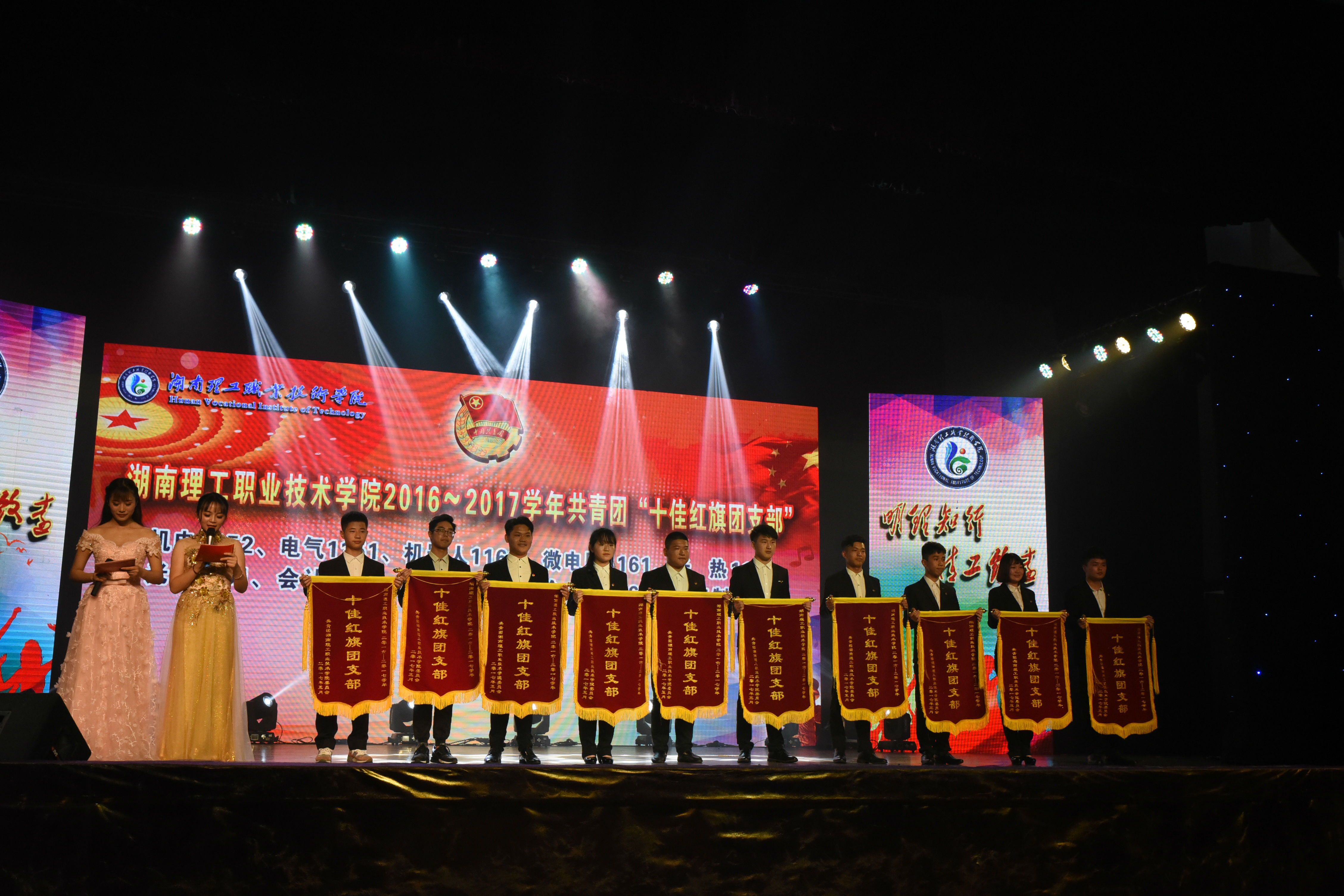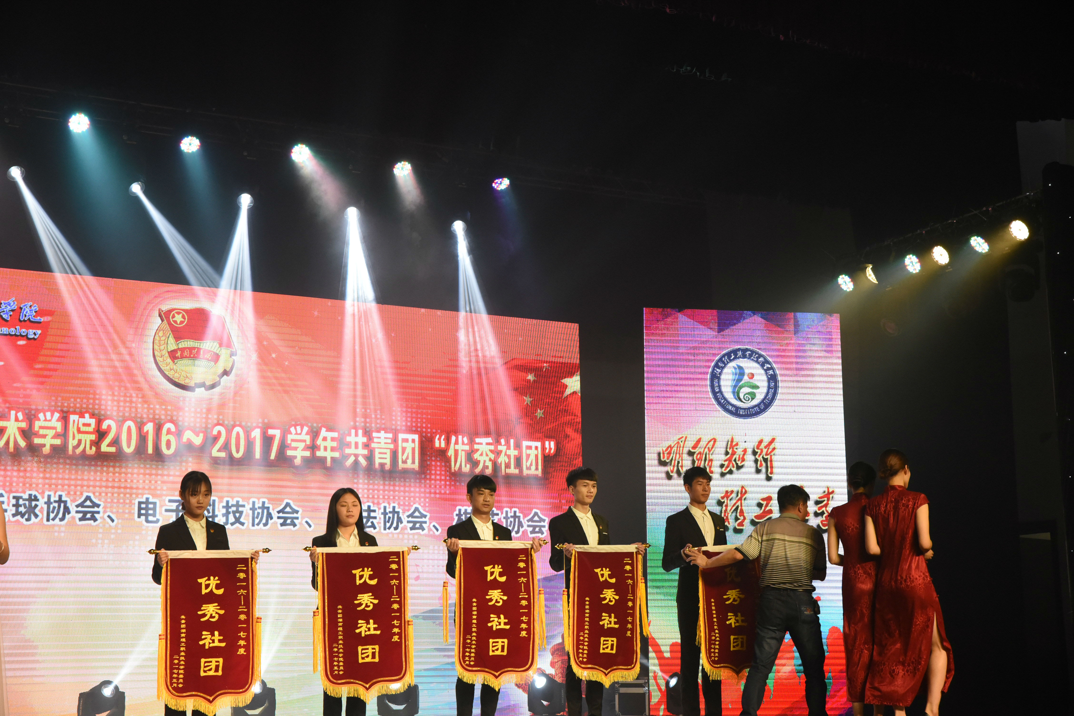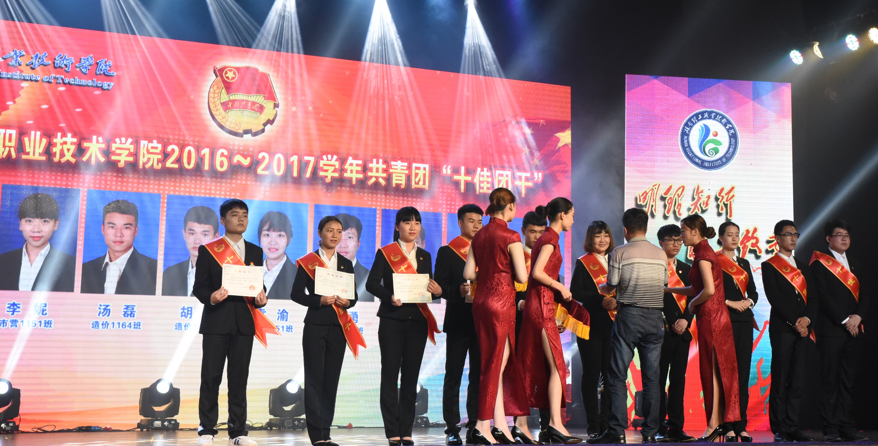 演出中,校领导们走上舞台,为2016-2017学年“十佳共青团员”、“十佳共青团干部”、“优秀社团”、“十佳红旗团支部”和“优秀团总支”进行了颁奖。