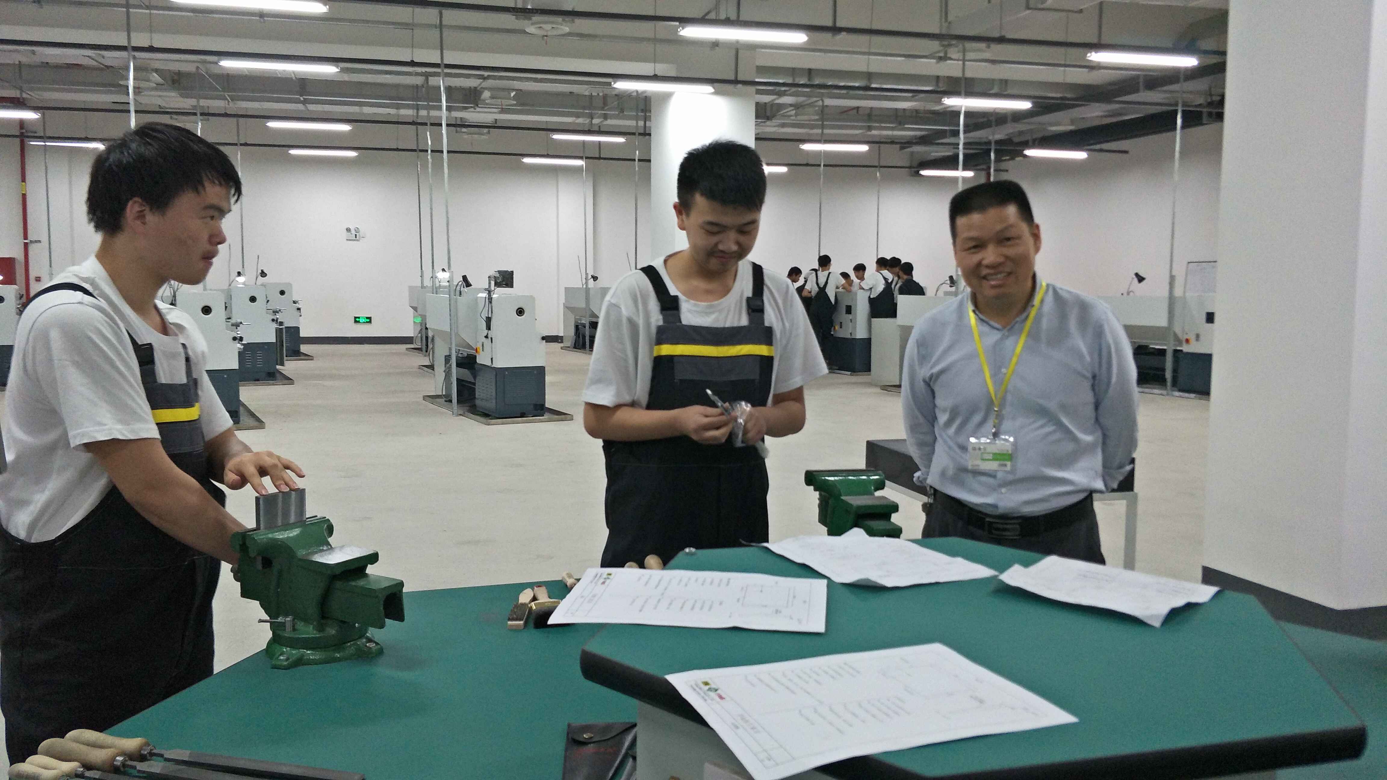 基地负责人介绍了企业的发展概况、生产规模以及学员的培养方法,带领大家参观走访了实习实践车间。随后罗校长一行来到舍弗勒培训中心实地考察学生的实操情况。罗校长对舍弗勒班级学生的现场技能操作看得认真,问得仔细。培训中心干净整洁的培训环境、严谨有序的教学管理、先进的实训设备和创新的教学模式得到了学校领导的高度评价。罗校长亲切地与学生们进行了交流,他希望同学们抓住学习机会,认真学习、为顺利走上工作岗位打好基础。