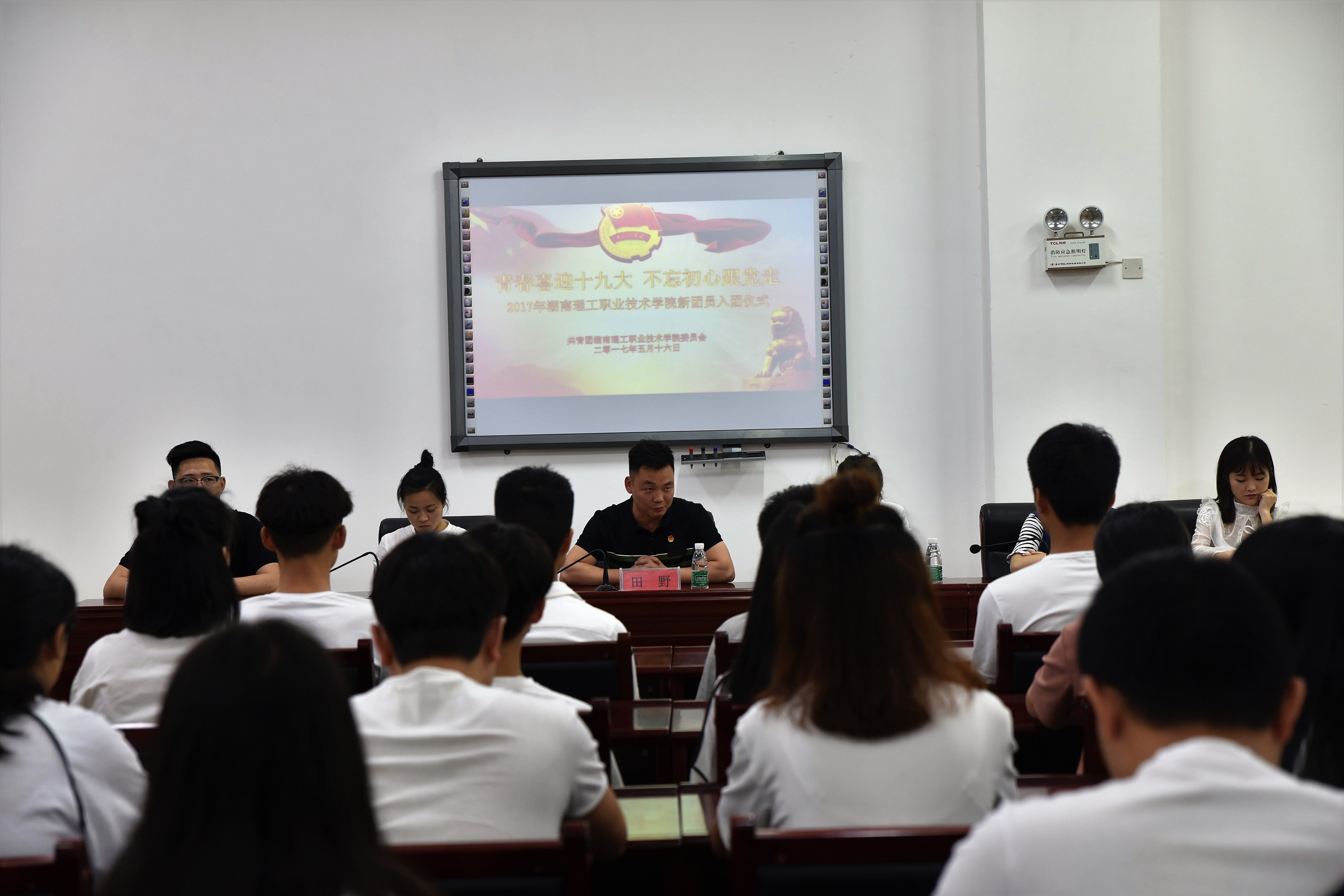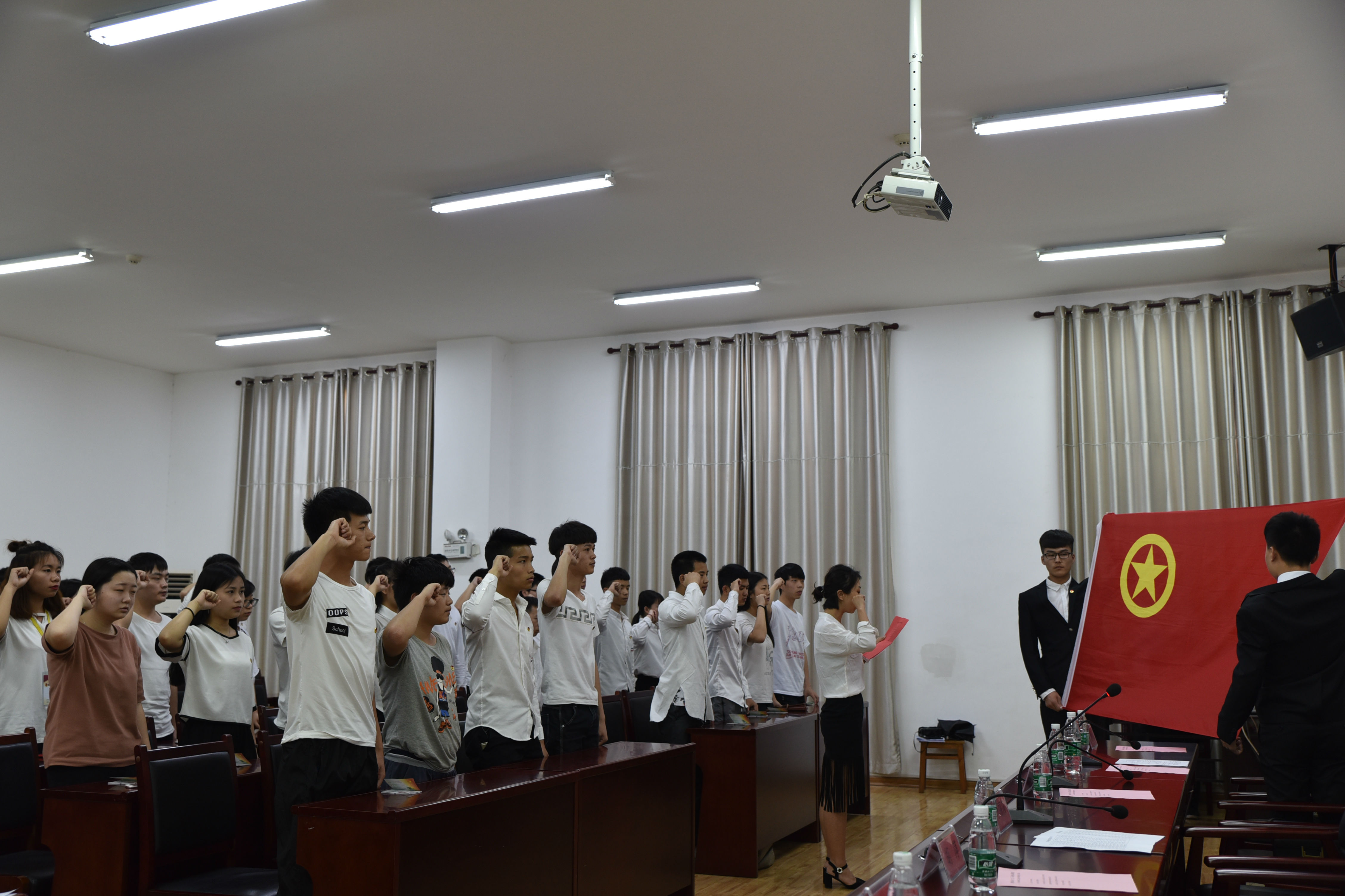 5月16日下午4点30,校团委以“青春喜迎十九大,不忘初心跟党走”为主题,在图书馆会议室举行2017年新团员入团仪式。校团委副书记田野老师,李丽莎老师,管理工程学院团总支书记李婷老师,五年制大专部团总支书记胡萍老师,太阳能学院代增远老师,风能工程学院吴雅婷老师以及团体新团员参加了此次入团仪式。
