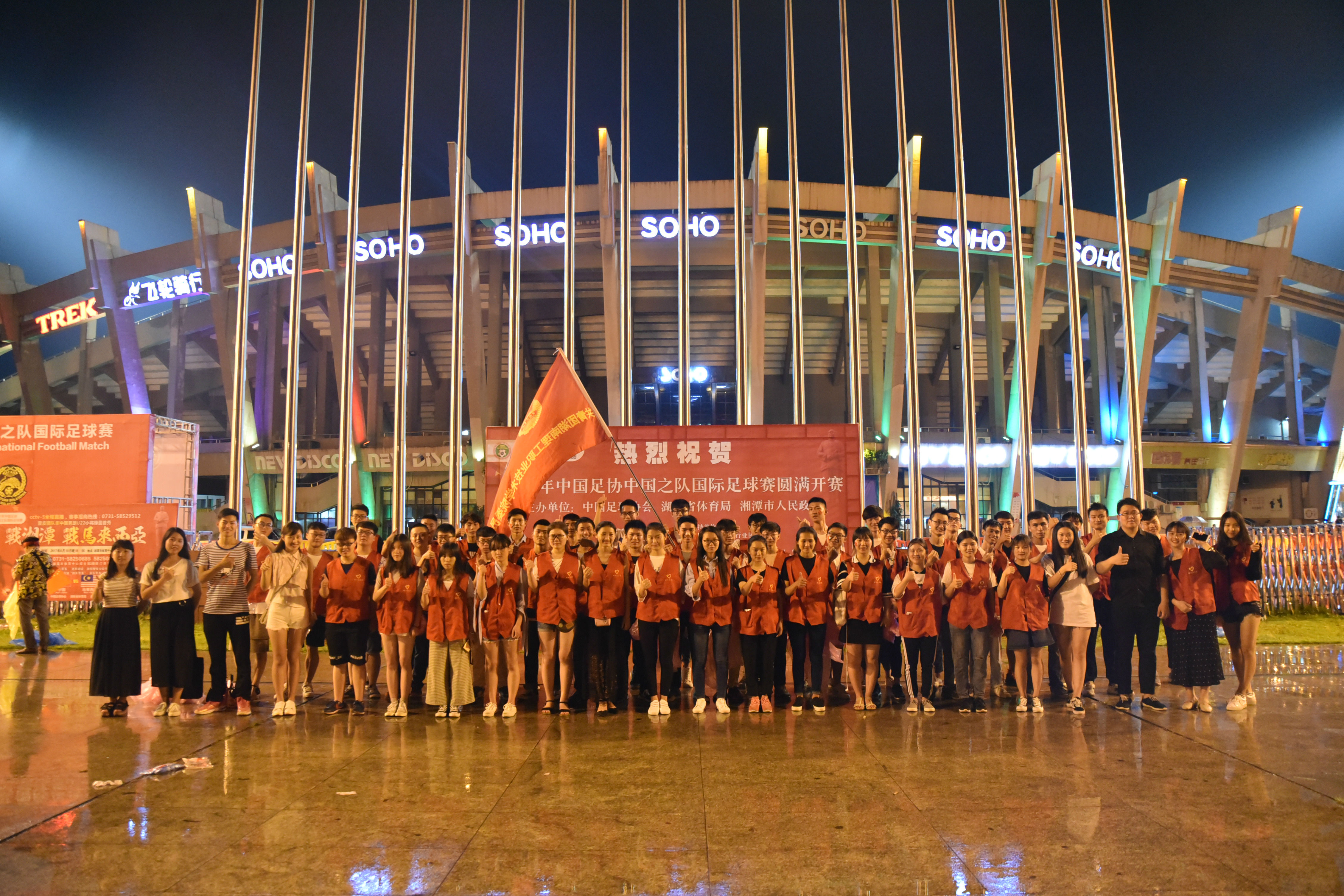 6月10日,一场国人瞩目的中国对马来西亚国际足球赛在湘潭市体育中心进行,随着中国队以1:0获胜,也将伟人故里,大美湘潭这座城市推到了国人眼前。校团委青年志愿者服务中心组织50名志愿者在体育中心为比赛进行服务,用志愿服务为国足助力!