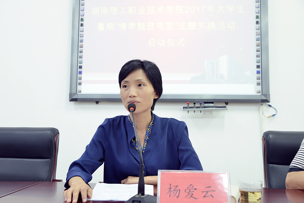 校长杨爱云对参与活动的师生致以良好祝愿,并提出了殷切期望。她指出,基层群众是我们最好的老师,基层是我们最好的课堂,我们要在实践中不断激发潜能,发现自己,锻炼自己。希望参与师生要把握锻炼机会,深入人民、深入群众,了解社会,在实践中汲取营养;要带着感情,带着梦想,助力扶贫,以实际行动诠释“明理知行 精工致远”的校训精神,充分展示理工师生的良好风貌。她强调,参与师生一定要按照要求,严明纪律,一切行动听指挥,要注意人身安全。在具体调研中要做到眼中要有大局,心中要有老百姓,手上要有办法,确保圆满完成调研任务,为做好扶贫攻坚工作舔砖加瓦,以实际行动喜迎党的十九大胜利召开。