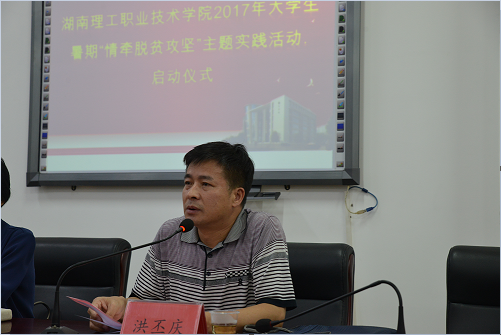 7月17日下午,我校暑期大学生“情牵脱贫攻坚”主题实践活动启动仪式在图书馆二会议室举行。校长杨爱云、副校长洪丕庆、相关职能部门领导及14支实践调研组的42名师生参加了本次活动,启动仪式由副校长洪丕庆主持。