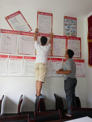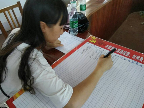 活动中,实践队员们走访当地村委会、派出所,协助他们完成当地贫困户的相关数据统计工作,完善精准扶贫档案,制作《挂图作战表》,完善脱贫攻坚作战图。我们从工作人员的讲解中了解到,挂图作战可以明确体现工作目标,展现工作进程,促使脱贫工作更高效的完成。