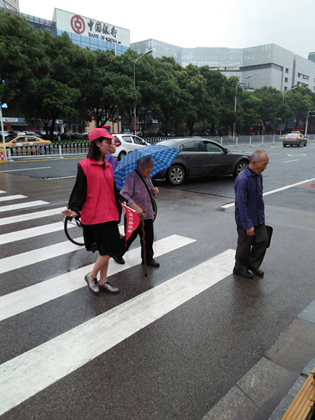 6月25日,志愿者们冒着大雨,坚守岗位,对行人乱穿马路行为进行及时劝导,引导市民文明出行,活动当天志愿者们劝导行人遵守交通规则26人,劝导非机动车闯红灯6起,帮助市民群众15人。