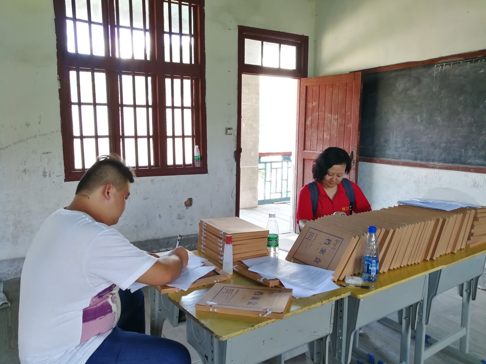 帮助当地扶贫相关部门整理资料是我们今天的主要任务,老师和同学们没有丝毫的懈怠,看着眼前排成长排的扶贫资料,手中笔不免有写沉重,不是因为任务的繁重,而是这些密密麻麻的文字,就像是当地贫困村的缩影。扶贫攻坚,不是简简单单几个字就能完成的任务,需要千千万人的共同努力。扶贫攻坚,我们在路上。