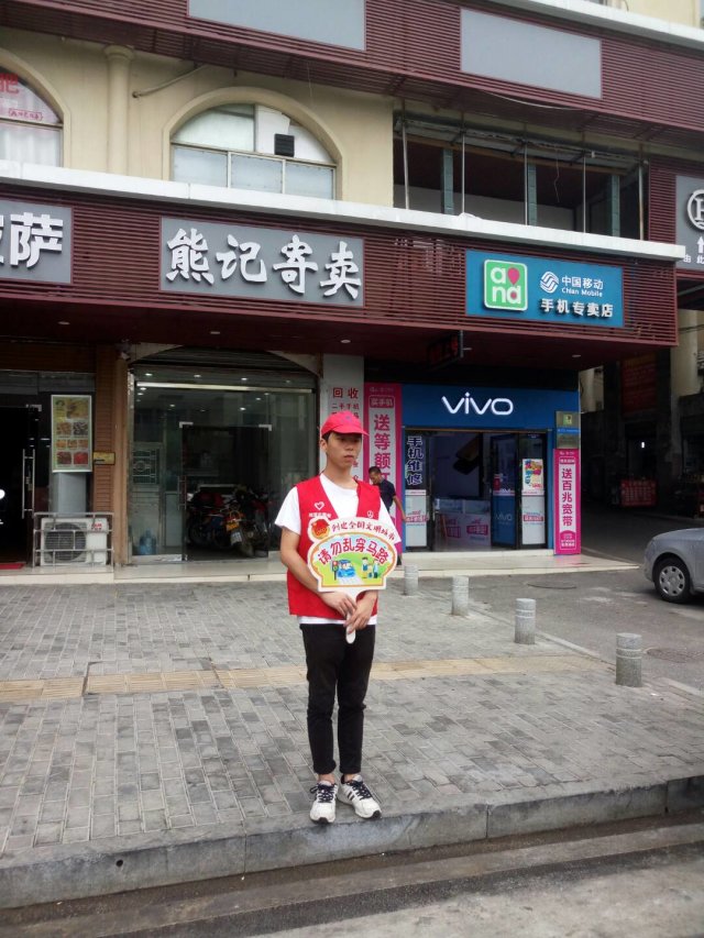 活动现场,志愿者们头戴志愿者服务帽,手拿文明劝导牌,维护交通秩序,劝导纠正行人乱穿马路、闯红灯等不文明行为。通过志愿者站岗值勤期间的以身作则,及时提醒,礼貌劝导和文明监督,让我校更多的同学养成良好的文明习惯和道德行为,努力形成“人人关注交通秩序,人人遵守交通法规”的良好交通氛围。