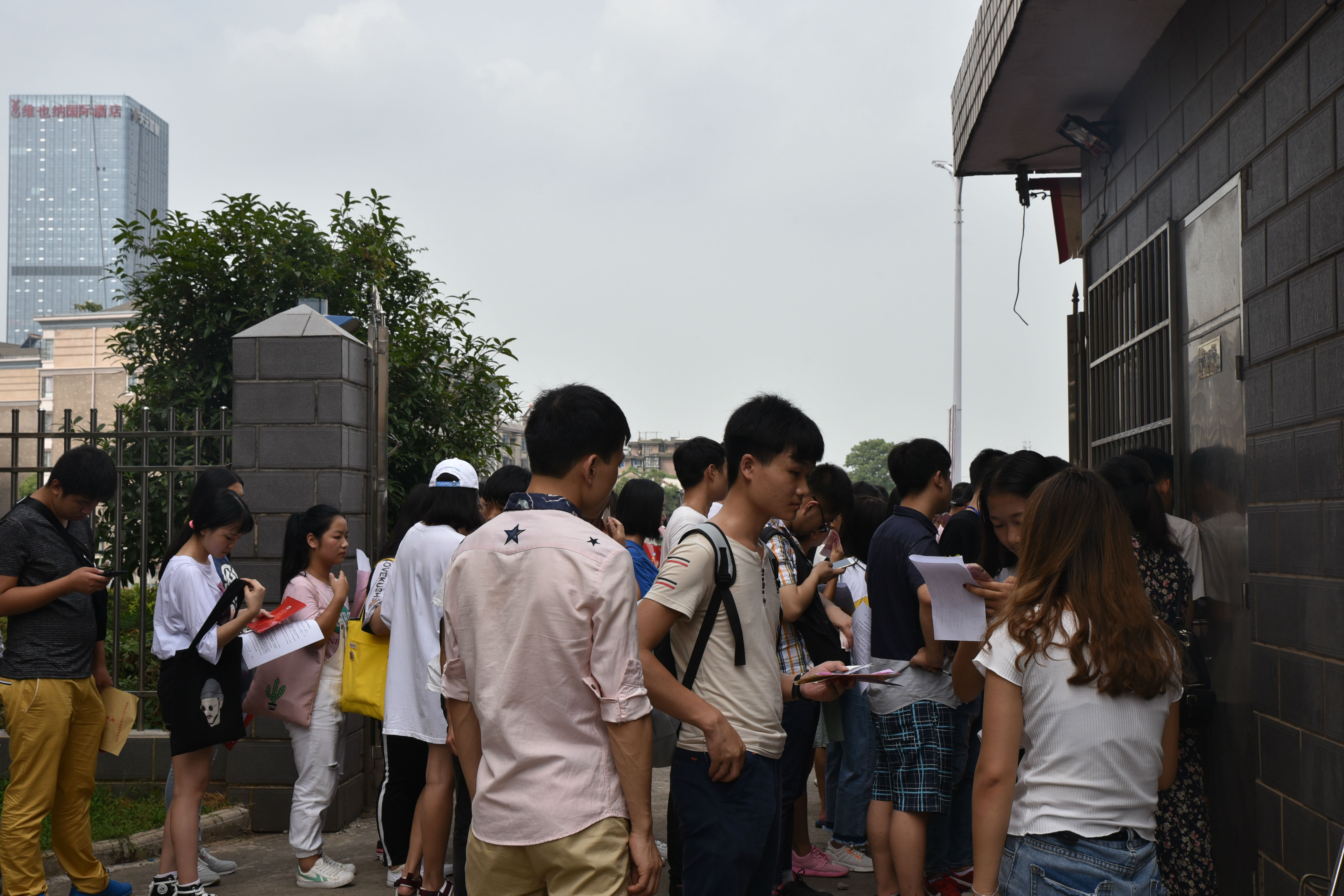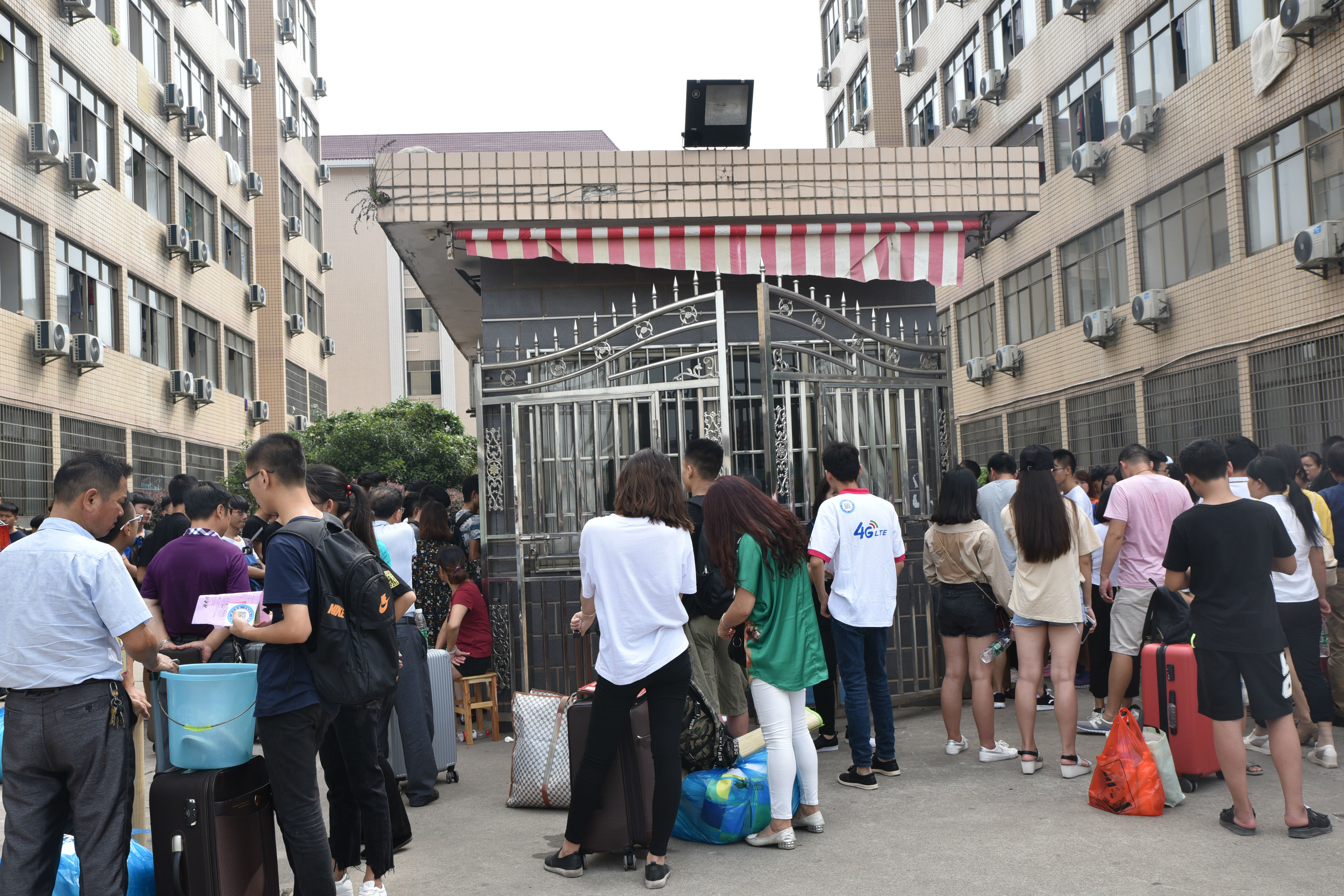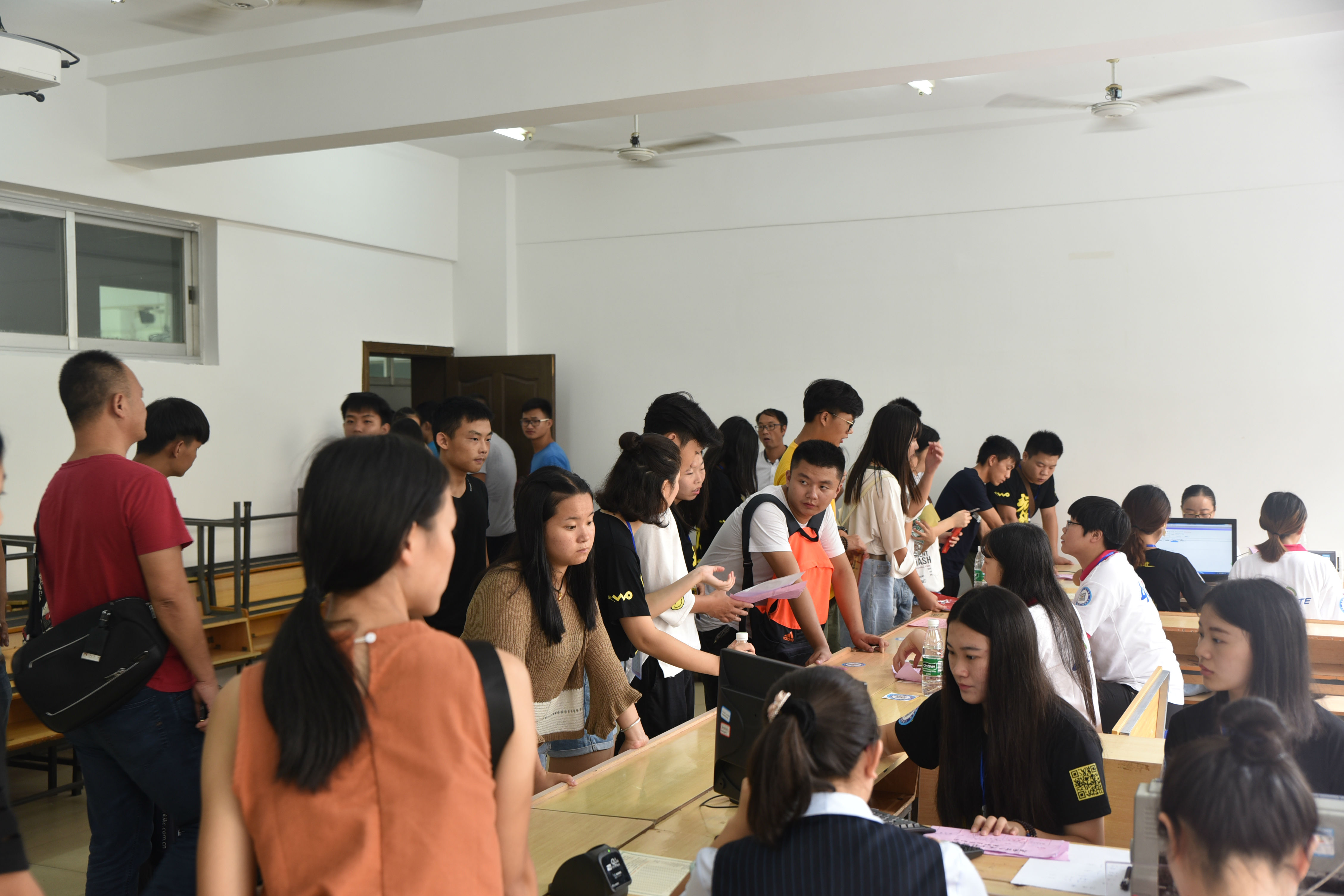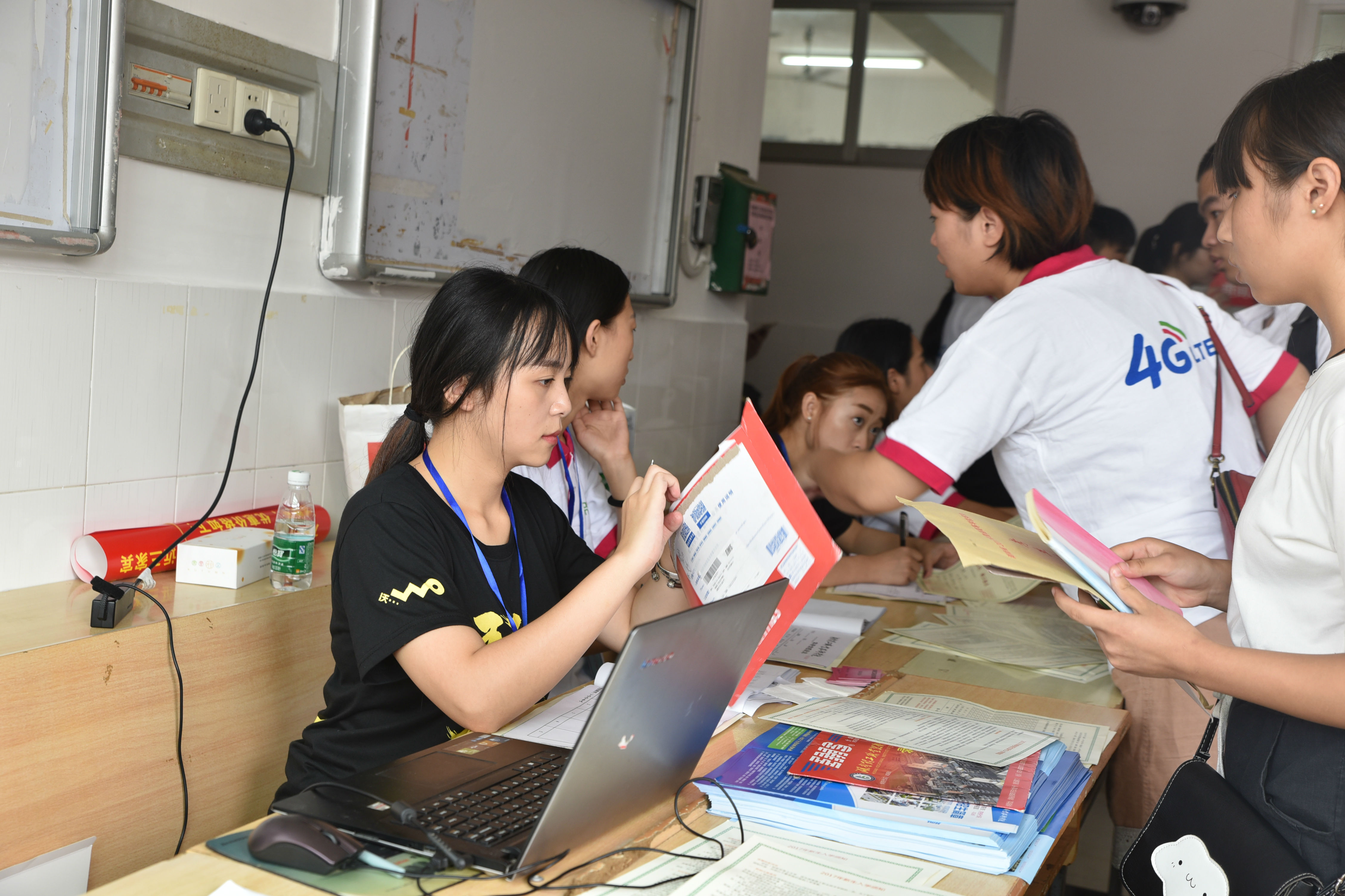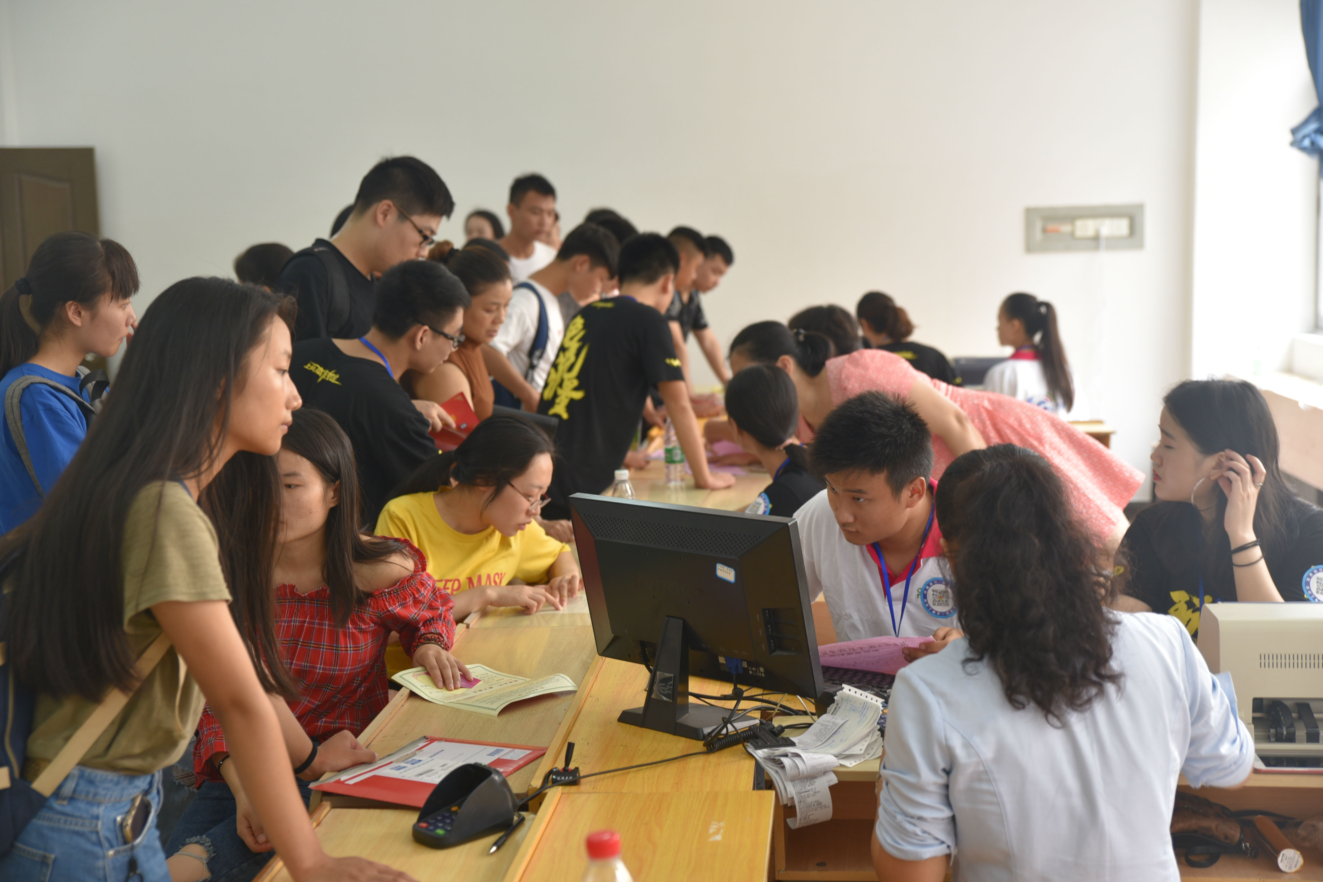 清晨的第一缕阳光刚刚升起,新生和家长们便早早前来办理手续。