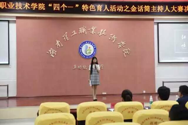 “四个一”特色文化育人活动之“理工金话筒”主持人大赛的成功举办,为同学们提供了一个展现自我的平台,让同学们从中得到锻炼,增强了我校学生的综合素质,在给大家带来精彩的主持过程中,播种了希望、传播正能量、见证了成长。