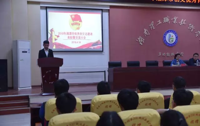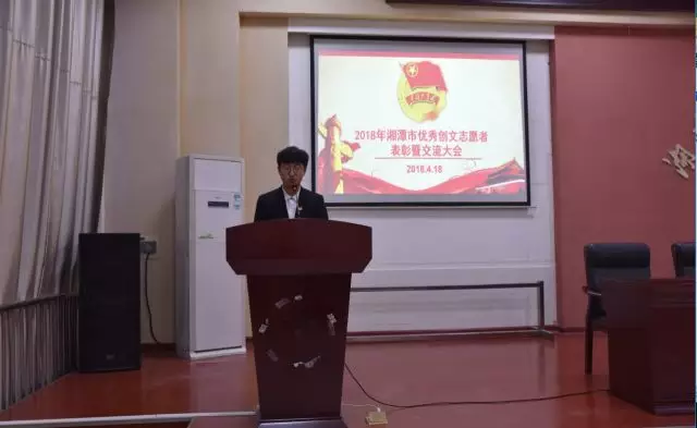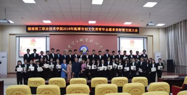 4月18日晚,由校团委主办,校学生会青年志愿者服务中心承办的2018年湘潭市创文优秀青年志愿者表彰暨交流大会在博学楼多功能报告厅顺利举行。校团委副书记李强,校团委李丽莎老师、智能制造学院团总支书记吴雅婷、管理艺术学院团总支书记李婷出席。大会由邓志翔同学主持。
