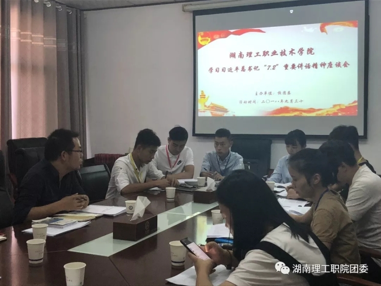 9月30日,为进一步学习习近平总书记“7.2”重要讲话,校团委举行了专题学习座谈会。会议由校团委副书记李强主持,校团委李丽莎老师,二级学院团总支书记杨菲、李婷、吴雅婷以及主要学生干部参加会议。