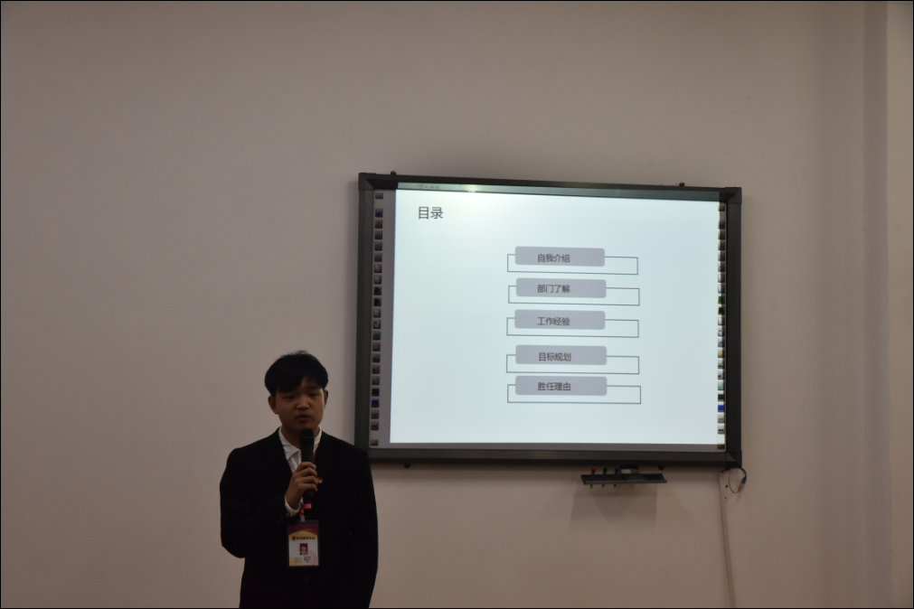各位校学生会部长候选人发表精彩竞职演讲。他们分别就自身优势、工作经历、对竞选岗位的认知以及对未来工作的设想等几个方面进行讲述,认真做到以饱满的热情和积极的态度对待工作中的每一件事,进一步促进部门的发展与进步。他们慷慨激昂的演讲赢得了现场一阵阵热烈的掌声,也展现了新时代我校学生干部的青春活力和责任担当。