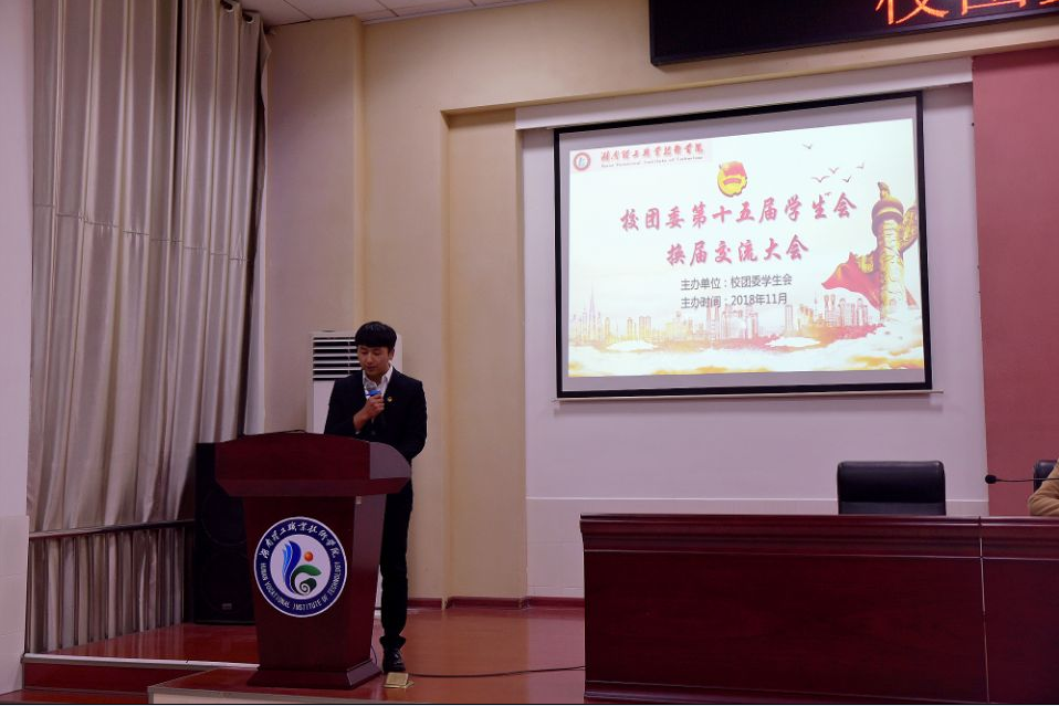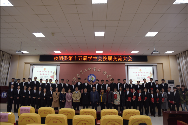 2018年11月7日18:30,校团委第十五届学生会换届交流大会在博学楼报告厅召开。校党委书记叶星成,三院党总支副书记,校团委老师,三院团总支书记,学生会各指导老师,校学生会、社团联合会及各二级学院学生会主要学生干部参加了此次大会。