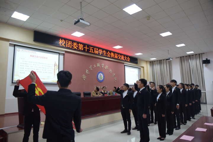 接着校团委第十五届学生会主要学生干部集体亮相,面对团旗庄严宣誓。